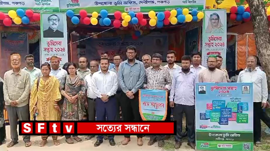 পঞ্চগড়ের দেবীগঞ্জ উপজেলায় আজ থেকে এক সপ্তাহ ব্যাপী স্মার্ট ভূমি সেবা সপ্তাহ শুরু হয়েছে। শনিবার দুপুর ১২.০০ ঘটিকার সময় দেবীগঞ্জ উপজেলার ভূমি অফিস চত্বরে ভূমি সেবা সপ্তাহের উদ্বোধন করেন দেবীগঞ্জ উপজেলা নির্বাহী অফিসার শরীফুল আলম।অনুষ্ঠানে বক্তবে বলেন, জাতির জনক বঙ্গবন্ধু শেখ মুজিবুর রহমানের দর্শন অনুসরণ করে বর্তমান সরকার স্মার্ট ভূমি ব্যবস্থাপনা গড়ে তুলেছে।এ ব্যবস্থাপনায় নাগরিক সেবা প্রাপ্তি সহজ ও সুন্দর হয়েছে। নাগরিক সেবা প্রাপ্তির সুবিধা গ্রহণ করতে নাগরিকদের স্মার্ট হতে হবে। ভূমি সেবা সপ্তাহ ভূমি ব্যবস্থাপনায় নাগরিক সম্পৃক্ততা বৃদ্ধিতে সচেতনতা সৃষ্টি করবে।দেবীগঞ্জ উপজেলা নির্বাহী অফিসার শরীফুল আলমের সভাপতিত্বে উদ্বোধনী অনুষ্ঠানে উপস্থিত ছিলেন তোরাব হোসেন সহকারী (ভৃমি) কমিশনার দেবীগঞ্জ পঞ্চগড়, আবু বক্কর সিদ্দিক আবু মেয়র দেবীগঞ্জ পৌরসভা,আলহাজ্ব গিয়াস উদ্দিন চৌধুরী সভাপতি বাংলাদেশ আওয়ামী লীগ দেবীগঞ্জ উপজেলা শাখা , জাকিরুল ইসলাম সুইডেন সভাপতি দেবীগঞ্জ পৌর আওয়ামী লীগ, বীর মুক্তিযোদ্ধা ও সাবেক কমান্ডার এ কে ভুইয়া, বীর মুক্তিযোদ্ধা বর্তমান কমান্ডার বাবু স্বদেশ চন্দ্র ,, এছাড়া আরো উপস্থিত ছিলেন অএ উপজেলা ভুমি অফিসের কর্মকর্তা কর্মচারীগণ ও ১০ টি ইউনিয়নের ভূমি সহকারী কর্মকর্তা বৃন্দ উপস্থিত ছিলেন।