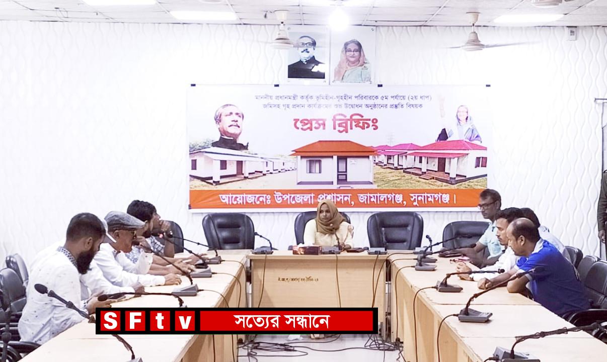 সুনামগঞ্জের জামালগঞ্জে ভূমিহীন ও গৃহহীন পরিবার পুনর্বাসনের লক্ষ্যে মাননীয় প্রধানমন্ত্রী শেখ হাসিনা কর্তৃক ৫ম পর্যায়ের ২য় ধাপে জমি ও গৃহ প্রদান কার্যক্রমের উদ্বোধন উপলক্ষে প্রেস ব্রিফিং করা হয়েছে। শনিবার (৮ জুন) দুপুরে উপজেলা প্রশাসনের আয়োজনে উপজেলা হল রুমে এ প্রেস ব্রিফিং অনুষ্ঠিত হয়। এ সময় উপজেলা নির্বাহী কর্মকর্তা (ইউএনও) ও সহকারী কমিশনার (অ.দ.) মুশফিকীন নূর প্রেস ব্রিফিংয়ে জানান, আশ্রয়ণ-২ প্রকল্পের আওতায় মাননীয় প্রধানমন্ত্রীর কার্যালয়ের সরাসরি তত্ত্বাবধানে নির্মিত ৫ম পর্যায়ের ২য় ধাপে আগামী ১০ জুন সারা দেশের ন্যায় জামালগঞ্জ উপজেলায় মোট ৬৩টি ভূমিহীন ও গৃহহীন পরিবারকে ২ শতক করে জমির দলিল ও নামজারি খতিয়ানসহ নতুন ঘর হস্তান্তর করা হবে।