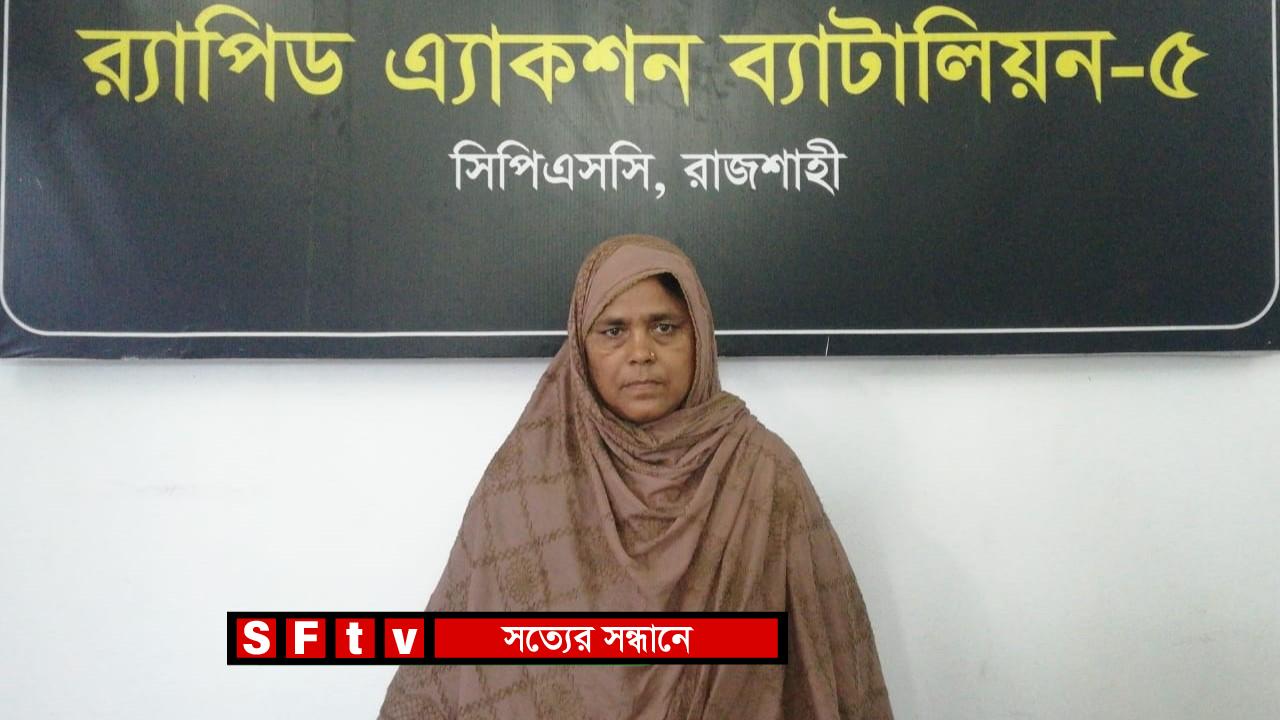 রাজশাহীর একটি অপারেশন দল ০৭ জুন ২০২৪ তারিখ রাত্রী - ০৮.৩০ ঘটিকায় চাঁপাইনবাবগঞ্জ জেলার সদর থানাধীন কোদালকাটি ভাড়পাড়া নামক এলাকায় অপারেশন পরিচালনা করে আসামী ১। মোছাঃ শাহানাজ বেগম (৪৮), স্বামীঃ মোঃ রফিকুল ইসলাম, বর্তমান সাং-কোদালকাটি ভাড়পাড়া, পূর্ব সাং-কোদালকাটি গাইনাপাড়া (যে পাড়াটি বর্তমানে পদ্মা নদী ভাঙ্গনে বিলীন), থানা-চাঁপাইনবাবগঞ্জ সদর, জেলা-চাঁপাইনবাবগঞ্জ‘কে গ্রেফতার করা হয় এবং হেরোইন-৪০০ গ্রাম ও নগদ=১৩,০০০/-টাকা উদ্ধার করা হয়।র্যাব-৫, রাজশাহীর সিপিএসসি, মোল্লাপাড়া ক্যাম্পের একটি চৌকস আভিযানিক দল গোয়েন্দা তথ্যের ভিত্তিতে জানতে পারে যে, চাঁপাইনবাবগঞ্জ জেলার সদর থানাধীন কোদালকাটি ভাড়পাড়া গ্রামস্থ সীমান্তবর্তী দূর্গম পদ্মার চরে কতিপয় মাদক ব্যবসায়ী নিজ বসতবাড়িতে অবৈধ মাদকদ্রব্য মজুদ রেখে বিক্রয়ের উদ্দেশ্যে অবস্থান করছে। পরবর্তীতে র্যা বের গোয়েন্দা দল আসামীদের গতিবিধি পর্যবেক্ষন করে। অদ্য ০৭ জুন ২০২৪ তারিখে একটি চৌকস আভিযানিক দল উক্ত ঘটনাস্থলে অভিযান পরিচালনা করে ধৃত আসামীর নিকট হতে ৪০০ গ্রাম অবৈধ মাদকদ্রব্য হেরোইন এবং নগদ ১৩,০০০/-টাকা উদ্ধার করা হয় এবং অপর আসামী মোঃ রফিকুল ইসলাম পিতা-মৃত তৈয়ব আলী মন্ডল বর্তমান সাং-কোদালকাটি ভাড়পাড়া, পূর্ব সাং-কোদালকাটি গাইনাপাড়া (যে পাড়াটি বর্তমানে পদ্মা নদী ভাঙ্গনে বিলীন), থানা-চাঁপাইনবাবগঞ্জ সদর, জেলা-চাঁপাইনবাবগঞ্জ অজ্ঞাত স্থানে পালিয়ে যায়।ধৃত আসামী ও পলাতক আসামী সম্পর্কে স্বামী ও স্ত্রী। তারা পারিবারিক ভাবেই দীর্ঘদিন যাবত অবৈধ মাদক ব্যবসার সাথে জড়িত এবং এলাকার চিহ্নিত মাদক ব্যবসায়ী। তাদের বসতবাড়ী দুর্গম এলাকায় হওয়ায় সহজে আইন-শৃঙ্খলা বাহিনীর চোখ ফাঁকি দিয়ে দীর্ঘদিন যাবত অবৈধ মাদকদ্রব্য হেরোইন ও ফেন্সিডিলসহ বিভিন্ন ধরণের মাদক অজ্ঞাত স্থান হতে সংগ্রহ করে চাঁপাইনবাবগঞ্জ ও রাজশাহী জেলার বিভিন্ন এলাকায় মাদক ব্যবসায়ীদের নিকট বিক্রয় করে আসছিল।