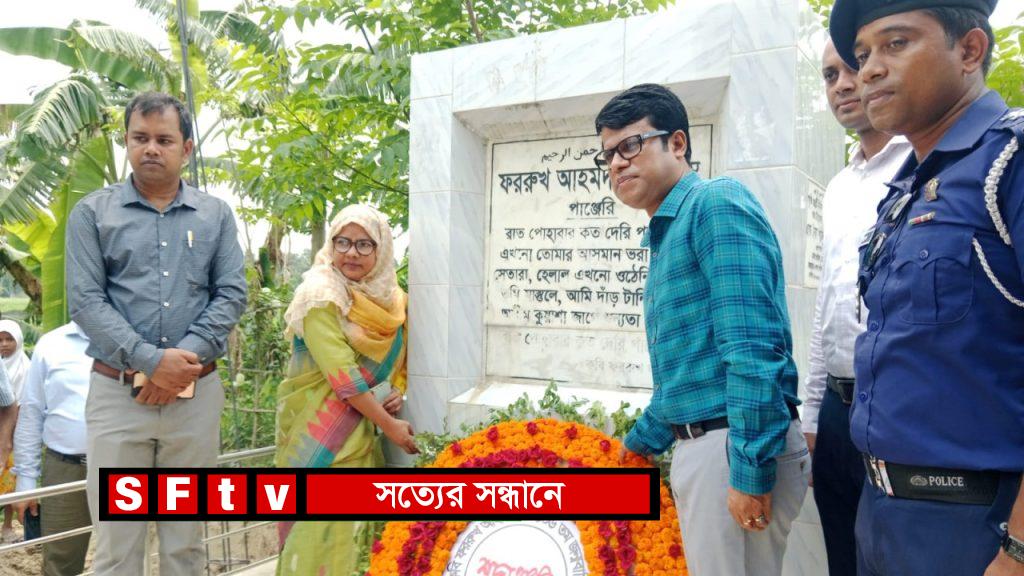মাগুরা জেলা প্রশাসনের আয়োজনে ১০ জুন সোমবার মাগুরা জেলার শ্রীপুর উপজেলার মাঝআাইল গ্রামে মুসলিম রেনেসাঁর কবি ফররুখ আহমেদের পৈত্রিক বাড়িতে সকাল ১০ টায় কবির ১০৬ তম জন্মবার্ষিকী উপলক্ষে দোয়া ও স্মরণসভা অনুষ্ঠিত হয়।স্মরণসভায় জেলা কালচারাল অফিসার এর সঞ্চালনায় জেলা ইসলামি ফাউন্ডেশনের সহকারী পরিচালক মোঃ মনিরুজ্জামানের সভাপতিত্বে প্রধান অতিথি হিসেবে উপস্থিত ছিলেন মাগুরা জেলা প্রশাসক মোহাম্মদ আবু নাসের বেগ, বিশেষ অতিথি হিসেবে উপস্থিত ছিলেন যথাক্রমে, অতিরিক্ত জেলা প্রশাসক (সার্বিক) মোঃ আব্দুল কাদির, শ্রীপুর উপজেলা নির্বাহী কর্মকর্তা মমতাজ মহল, ইউনিয়ন পরিষদের চেয়ারম্যান হুমায়ুন রশিদ মুহিত। অনুষ্ঠানের শুরুতে স্বাগত বক্তব্য রাখেন কবি ফররুখ আহমেদের ভাইয়ের ছেলে শিপন। প্রধান অতিথি জেলা প্রশাসক মোহাম্মদ আবু নাসের বেগ তার বক্তব্যে বলেন, ” কবি ফররুখ আহমেদ ছিলেন মুসলিম রেনেসাঁর কবি।তিনি মুসলমানদের ধর্মীয় গোড়ামী ভেঙে একটি নবজাগরণ সৃষ্টি করেছিলেন। আমি যখন এখানে পা রাখলাম আমার সমস্ত শরীর পুলকিত হয়ে উঠলো যা আপনাদেরও হওয়া উচিত। জেলা প্রশাসনের পক্ষ থেকে এখানে একটি লাইব্রেরি করে দেয়া হবে।শ্রীপুরে অনেক মহৎ মানুষ জন্ম নিলেও এখানে প্রায় প্রতিদিনই দাঙ্গা হাঙ্গামা লেগে থাকে। আসলে আমাদেরকে ভালো ভালো মানুষদের জীবনী নিয়ে নিয়ে চর্চা বাড়াতে হবে তবেই সংঘর্ষ এড়াতে পারব। কবি ফররুখকে নিয়ে গবেষণা করে অনেক মানুস বিখ্যাত হচ্ছে আর আমরা তার এলাকায় সংঘর্ষ করছি।তিনি আমাদের অনেক কিছু দিয়েছেন যারা বুঝতে পারছি না তাদেরকে বলবো ওনার বই পড়ে দেখুন তাহলে ভালো কিছু পেয়ে যাবেন।” সভা শেষে কবির আত্মার শান্তি কামনা করে দোয়া ও মোনাজাত করা হয়।দোয়া ও মোনাজাতে কবির আত্মীয় স্বজন, এলাকার সাধারণ জনগন ও অসংখ্য কবি ভক্ত উপস্থিত ছিলেন।