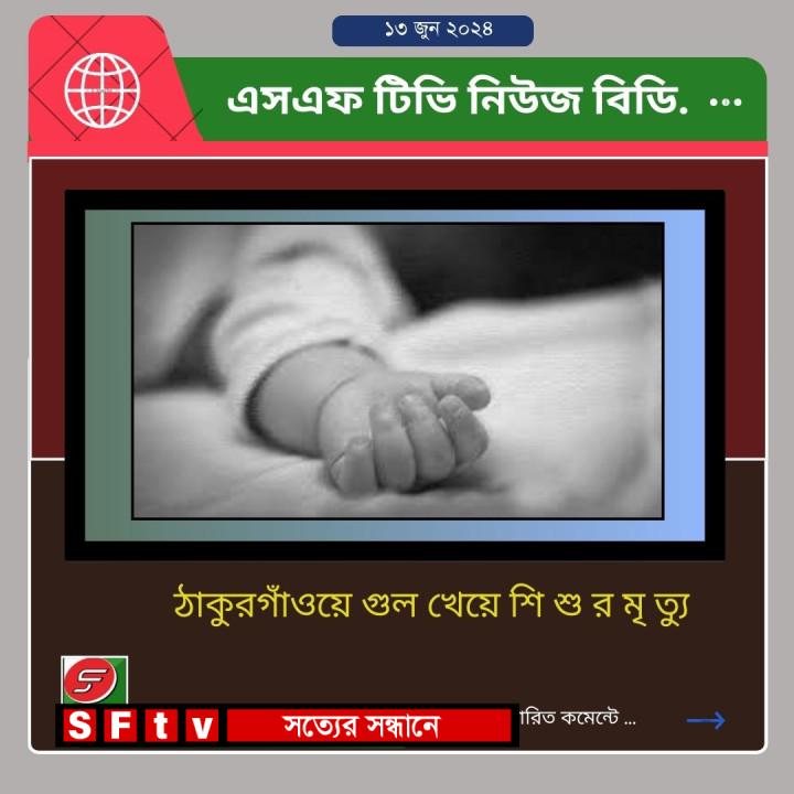 ঠাকুরগাঁও জেলার রানীশংকৈল উপজেলায় গুল খেয়ে ১৮ মাস বয়সী এক মেয়ে শিশুর মৃত্যুর হয়েছে। গতকাল (বুধবার) সন্ধ্যায় উপজেলার ধর্মগড় ইউনিয়নের চেংমারি গ্রামে ঘটনাটি ঘটে। মারা যাওয়া শিশুটির নাম সিদ্দিকা আক্তার। সে ওই গ্রামের দিনমজুর আবু বক্কর সিদ্দিকের মেয়ে। এলাকাবাসী ও স্থানীয় ইউপি সদস্য আবুল কাশেম বলেন, বিকেলের দিকে শিশুটির বাবা ও মা দুজনেই বসতঘরের চৌকির ওপর ১৮ মাস বয়সী সিদ্দিকাকে রেখে বাড়ির পাশের মাঠে ঘাস কাটতে যান। কাজ শেষে সন্ধ্যায় বাসায় ফিরে দেখতে পান বাড়ির উঠানের পাশে রাস্তায় শিশুটির হাতে গুলভর্তি থাকা প্লাস্টিকের কৌটাসহ শিশুটি ছটফট করছে। পরে শিশুটিকে পার্শ্ববর্তী বাজারে পল্লী চিকিৎসকের কাছে নিয়ে যাওয়া হলে চিকিৎসক তাকে মৃত ঘোষণা করেন। এ বিষয়ে রানীশংকৈল থানার ভারপ্রাপ্ত কর্মকর্তা (ওসি) জয়ন্ত কুমার সাহা জানান, গুল খেয়ে শিশুটির মৃত্যু হয়েছে। নিহতের পরিবারের কোনো অভিযোগ না থাকায় এডিএমের অনুমতি সাপেক্ষে মরদেহ পরিবারের কাছে হস্তান্তর করা হয়েছে।