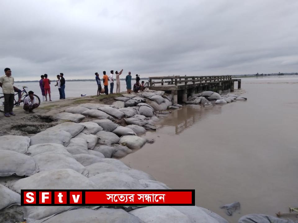 কুড়িগ্রামের রাজারহাট উপজেলার বিদ্যানন্দ ইউনিয়নের চতুরায় তিস্তার প্রবল ভাঙ্গন শুরু হয়েছে। অপরদিকে ঘড়িয়ালডাঙ্গা ইউনিয়নের বুড়িরহাট স্পার বাধটি ঝুঁকিপূর্ণ অবস্থায় রয়েছে। বুড়িরহাট স্পার বাধে সামনে স্রোতের গতি ধারা পরিবর্তনের জন্য একটি সুইচ গেট নির্মাণ করা হয়। কিন্তু গত দুইদিনের ভারী বৃষ্টিপাত ও ভারতের সিকিম হতে নেমে আসা পাহারী ঢলের কারনে প্রবল স্রোতের রূপ নেয় আগ্রাসী তিস্তানদী। এই স্রোতের গতিবেগের কারণে বুড়িরহাটের স্পার বাধের ডান দিকের অংশ ডেবে যায় এবং সামনের অংশ যে কোন মহুর্তে তিস্তা নদী গর্ভে বিলীন হয়ে যেতে পারে বলে মনে করেন স্থানীয় বাসিন্দা নুরুল মিয়া,সিরাজুল হক,আলম মিয়া সহ অনেকে। তারা মনে করেন যেভাবে তিস্তানদীর স্রোত বাড়তেছে এভাবে থাকলে পুরা বুড়িরহাট স্পার বাধটি তিস্তানদী গর্ভে বিলীন হয়ে যেতে পারে। আর এই স্পার বাধটি ভেঙ্গে গেলে ঘড়িয়ালডাঙ্গা ইউনিয়নের চর গতিয়াসাম,খিতাবখা,মেদনী সহ বিদ্যানন্দের রামহরি চতুরা সহ প্রায় ১০টি গ্রামের ১০হাজার পরিবার তিস্তানদীর ভাঙ্গনের শিকার হতে পারে। তাই এখনই জরুরী ভিত্তিতে ব্যবস্থা নেওয়া না হলে পরে কিচ্ছু করার থাকবে না। বিদ্যানন্দের চতুরা কালির মেলা বাজারের সুরেশের চায়ের দোকান ও বাড়ি ইতিমধ্যে তিস্তার ভাঙ্গনে সরিয়ে নেওয়া হয়েছে।চতুরা কালির মেলা বাজার সহ একটি সরকারী প্রাথমিক বিদ্যালয় ও একটি মসজিদ ঝুকিতে রয়েছে। স্থানীয়রা মনে করেন জরুরী ভিত্তিতে ব্যবস্থা না নিলে তিস্তার পানি কমার সাথে সাথে ভাঙ্গনে বিলীন হয়ে যেতে পারে পুরা বাজারটি সহ স্কুল ও মসজিদ। চতুরার তিস্তানদীর তিরবর্তী এরশাদুল হক,লতিফ মাস্টার,মিলন সরকার সহ প্রায় ৪০ টি পরিবার তিস্তার ভাঙ্গন আতংকে নির্ঘুম রাত কাটাচ্ছেন। তারা দাবী করেন দ্রুত জিও ব্যাগ ফেলে এই ভাঙ্গন ঠেকানোর।