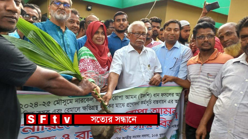 পাইকগাছায় ২০২৩-২৪ অর্থ বছরে খরিপ-২/ ২০২৪-২৫ মৌসুমে বিনামূল্যে দেশী জাতের নারিকেলের চারা ও রোপা আমন (উফশি) ধান ফসলের আবাদ এবং উৎপাদন বৃদ্ধির লক্ষ্যে প্রান্তিক ও ক্ষুদ্র কৃষক, রেমালে ক্ষতিগ্রস্থ কৃষকদের মাঝে কৃষি প্রণোদনা কর্মসূচির বাস্তবায়নের আওতায় বিনামূল্যে নারিকেলের চারা ও রোপা আমন (উফশি) ধান বীজ ও রাসায়নিক সার বিতরণ করা হয়েছে।