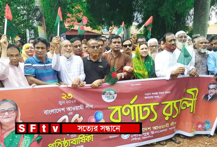 ময়মনসিংহের গৌরীপুর উপজেলায় সংগ্রাম, উন্নয়ন, অর্জন ও দীপ্তময় পথচলার প্রাচীনতম রাজনৈতিক সংগঠন বাংলাদেশ আওয়ামীলীগের ৭৫তম (প্লাটিনাম জয়ন্তী) প্রতিষ্ঠা বার্ষিকী বর্ণিল আয়োজনে উদযাপন করা হয়েছে। আজ ২৩ জুন সকাল ১১ ঘটিকায় গৌরীপুর মহিলা ডিগ্রী কলেজ অডিটরিয়ামে আলোচনা সভা অনুষ্ঠিত হয়। উক্ত আওয়ামীলীগের প্রতিষ্ঠাবার্ষিকীতে সভাপতিত্ব করেন গৌরীপুরের মাননীয় সংসদ সদস্য ও গৌরীপুর উপজেলা আওয়ামীলীগের সভাপতি এ্যাডভোকেট নিলুফার আনজুম পপি। আলোচনা সভার পূর্বে তিনি আওয়ামীলীগের বিভিন্ন অঙ্গ সংগঠনের নেতাকর্মীদের নিয়ে বর্ণাঢ্য র্যালি বের করে উপজেলার চত্বরের বিভিন্ন পয়েন্ট প্রদক্ষিণ করে। র্যালি শেষে উপজেলা আওয়ামীলীগের