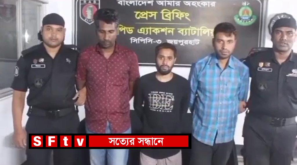 জয়পুহাটের আক্কেলপুর থেকে পর্নোগ্রাফি সংরক্ষণ ও বিক্রয়চক্রের মূলহোতাসহ ৩ সদস্যকে আটক করেছে র্যাব-৫,জয়পুরহাট ক্যাম্পের সদস্যরা। আটককৃতরা হলেন, আক্কেলপুর উপজেলার আওয়ালগাড়ি গ্রামের সামসুদ্দিন মন্ডলের ছেলে পর্নোগ্রাফি ভিডিও সংরক্ষণ ও সরবরাহকারী মূলহোতা জাহিদুল ইসলাম (৩৩), নওগাঁ জেলার বদলগাঁছী থানার পূর্ব খাদাইল গ্রামের আমজাদ হোসেনের ছেলে আবুল কালাম (৪০) ও পশ্চিম খাদাইল গ্রামের আজিজুল হকের ছেলে রিপন হোসেন (৩০) এবং আক্কেলপুর ঘোষ পাড়া এলাকার শ্রী রণজিৎ ঘোষের ছেলে শ্রী বণিক ঘোষ(৩৮) কৌশলে পালিয়ে যায়। আজ দুপুরে জয়পুরহাট র্যাব-৫, ক্যাম্পের পাঠানো এক প্রেস বিজ্ঞপ্তিতে জানানো হয়, গোয়েন্দা তথ্যের ভিত্তিতে, সিপিসি-৩, জয়পুরহাট র্যাব ক্যাম্পের একটি চৌকস অপারেশনাল দল গতকাল রাতে জেলার আক্কেলপুর কলেজ বাজার এলাকায় অভিযান পরিচালনা করে তাদের আটক করেন। আটককৃতরা আক্কেলপুর কলেজ বাজার এলাকায় পর্ণগ্রাফি চক্রের মূলহোতা জাহিদুলের নেতৃত্বে তাদের দোকানের নিজস্ব কম্পিউটারের হার্ডডিক্সে অশ্লীল সিনেমা ও ভিডিও ক্লিপ আপলোড ব্যবসার পাশাপাশি পর্নোগ্রাফি সংরক্ষণ করে টাকার বিনিময়ে বিভিন্ন ইলেকট্রিক ডিভাইসের মাধ্যমে স্থানীয় কিশোর ও স্কুল পডুয়া ছাত্রদের কাছে পর্নোগ্রাফি ভিডিও সরবরাহ করত। পরবর্তীতে তাদের বিরুদ্ধে যথাযথ আইনগত ব্যবস্থা গ্রহণ করতে তাদেরকে আক্কেলপুর থানায় হস্তান্তর করা হয়েছে বলে আক্কেলপুর থানার অফিসার ইনচার্জ ওসি নয়ন জানান।