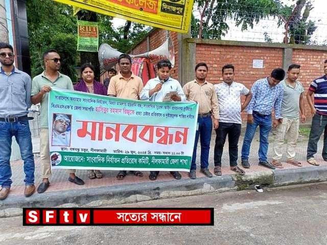 নীলফামারীতে সাংবাদিক হাসিবুর রহমান রিজুর হত্যা চেষ্টার প্রতিবাদে, আসামিদের দৃষ্টান্তমূলক শাস্তি ও সাংবাদিক সুরক্ষা আইন প্রণয়নের দাবিতে ঘন্টা ব্যাপী মানববন্ধন অনুষ্ঠিত হয়েছে।