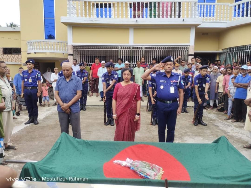 আলমডাঙ্গা উপজেলা নির্বাহী কর্মকর্তা স্নিগ্ধা দাস ও আলমডাঙ্গা থানার অফিসার ইনচার্জ শেখ গণি মিয়ার উপস্থিতিতে জেলা পুলিশের একটি চৌকস দল গার্ড অফ অনার প্রদান করেছেন।