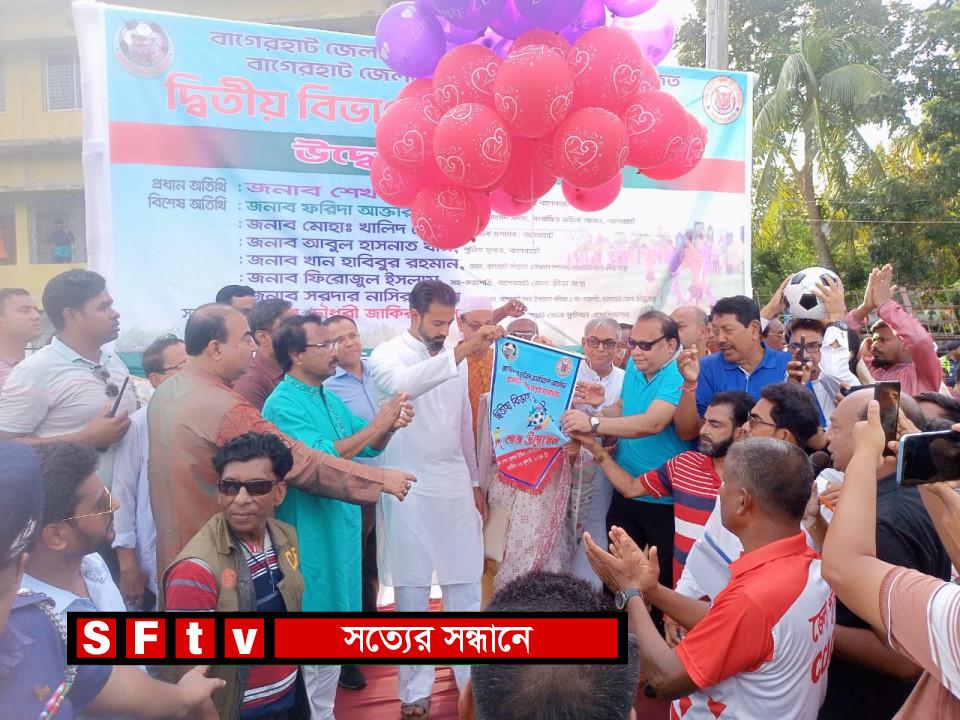বাগেরহাট জেলা ফুটবল এসোসিয়েশন আয়োজিত ও জেলা ক্রীড়া সংস্থার সহযোগিতায় শনিবার (৬ জুলাই) বিকালে বাগেরহাট শেখ হেলাল উদ্দিন স্টেডিয়ামে প্রধান অতিথি হিসেবে উপস্থিত থেকে বেলুন, ফেস্টুন ও পায়রা উড়িয়ে মাসব্যাপী দ্বিতীয় বিভাগ ফুটবল লীগের শুভ উদ্বোধন করেন শেখ তন্ময় এম.পি।