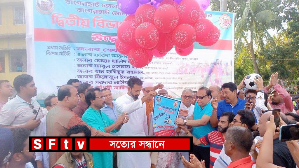 বাগেরহাট জেলা ফুটবল এসোসিয়েশন আয়োজিত ও জেলা ক্রীড়া সংস্থার সহযোগিতায় শনিবার (৬ জুলাই) বিকালে বাগেরহাট শেখ হেলাল উদ্দিন স্টেডিয়ামে প্রধান অতিথি হিসেবে উপস্থিত থেকে বেলুন, ফেস্টুন ও পায়রা উড়িয়ে মাসব্যাপী দ্বিতীয় বিভাগ ফুটবল লীগের শুভ উদ্বোধন করেন শেখ তন্ময় এম.পি।উদ্বোধনী অনুষ্ঠানে উপস্থিত হলে বাগেরহাট জেলা ফুটবল এসোসিয়েশন ও জেলা ক্রীড়া সংস্থার কর্মকর্তাবৃন্দ শেখ তন্ময় এম.পি কে ফুলের শুভেচ্ছা জানান।জেলা ফুটবল এসোসিয়েশনের সভাপতি ও বাফুফের সদস্য চৌধুরী জাকির হোসেনের সভাপতিত্বে উদ্বোধনী অনুষ্ঠানে অন্যান্যের মধ্যে সংরক্ষিত মহিলা সংসদ সদস্য ফরিদা আক্তার বানু লুচি, জেলা প্রশাসক মোহা: খালিদ হোসেন, পুলিশ সুপার আবুল হাসনাত খান, জেলা ক্রীড়া সংস্থার সাধারণ সম্পাদক ও পৌর মেয়র খান হাবিবুর রহমান, বাগেরহাট জেলা ফুটবল এসোসিয়েশন ও জেলা ক্রীড়া সংস্থার কর্মকর্তাবৃন্দ, জেলা আওয়ামী লীগ ও সকল সহযোগী সংগঠনের নেতৃবৃন্দ, প্রিন্ট ও ইলেকট্রনিক মিডিয়ার সাংবাদিক সহ বিভিন্ন শ্রেণী পেশার মানুষ এসময় উপস্থিত ছিলেন।