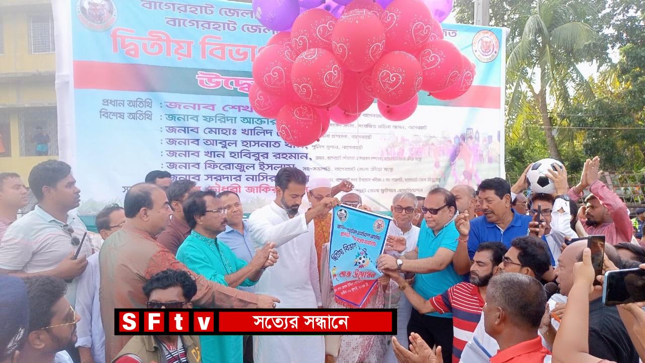 বাগেরহাট জেলা ফুটবল এসোসিয়েশন আয়োজিত ও জেলা ক্রীড়া সংস্থার সহযোগিতায় শনিবার (৬ জুলাই) বিকালে বাগেরহাট শেখ হেলাল উদ্দিন স্টেডিয়ামে প্রধান অতিথি হিসেবে উপস্থিত থেকে বেলুন, ফেস্টুন ও পায়রা উড়িয়ে মাসব্যাপী দ্বিতীয় বিভাগ ফুটবল লীগের শুভ উদ্বোধন করেন শেখ তন্ময় এম.পি।উদ্বোধনী অনুষ্ঠানে উপস্থিত হলে বাগেরহাট জেলা ফুটবল এসোসিয়েশন ও জেলা ক্রীড়া সংস্থার কর্মকর্তাবৃন্দ শেখ তন্ময় এম.পি কে ফুলের শুভেচ্ছা জানান।জেলা ফুটবল এসোসিয়েশনের সভাপতি ও বাফুফের সদস্য চৌধুরী জাকির হোসেনের সভাপতিত্বে উদ্বোধনী অনুষ্ঠানে অন্যান্যের মধ্যে সংরক্ষিত মহিলা সংসদ সদস্য ফরিদা আক্তার বানু লুচি, জেলা প্রশাসক মোহা: খালিদ হোসেন, পুলিশ সুপার আবুল হাসনাত খান, জেলা ক্রীড়া সংস্থার সাধারণ সম্পাদক ও পৌর মেয়র খান হাবিবুর রহমান, বাগেরহাট জেলা ফুটবল এসোসিয়েশন ও জেলা ক্রীড়া সংস্থার কর্মকর্তাবৃন্দ, জেলা আওয়ামী লীগ ও সকল সহযোগী সংগঠনের নেতৃবৃন্দ, প্রিন্ট ও ইলেকট্রনিক মিডিয়ার সাংবাদিক সহ বিভিন্ন শ্রেণী পেশার মানুষ এসময় উপস্থিত ছিলেন।