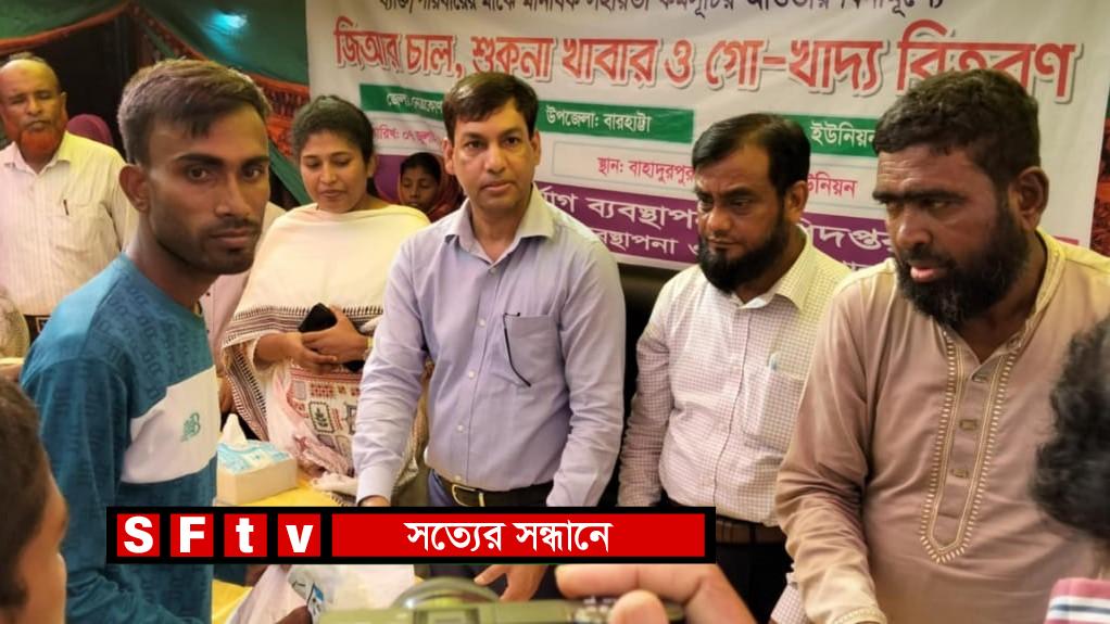 উপজেলা চিরাম বাহাদুরপুর বাজারে ১৫০ টি পরিবারের মাঝে শুকনো খাবার ও চাল বিতরণ করেন। এছাড়াও ৪০ জন কৃষককে ৪০ প্যাকেট গো-খাদ্য দেয়া হয়।২০২৪-২৫ অর্থ বছরে বন্যা, নদী ভাঙ্গন, ঘুর্নিঝড় ও প্রাকৃতিক দুর্যোগে ক্ষতিগ্রস্ত ব্যক্তি/ পরিবারের মাঝে মানবিক সহায়তা কর্মসূচির আওতায় বিনামূল্যে জিআর চাল, শুকনো খাবার ও গো-খাদ্য বিতরণ অনুষ্ঠানে উপজেলা নির্বাহী কর্মকর্তা ফারজানা আক্তার ববি’র সভাপতিত্বে ও চিরাম ইউনিয়ন পরিষদের চেয়ারম্যান ছাইদুর রহমান চৌধুরীর সঞ্চলনায় প্রধান অতিথি হিসেবে উপস্থিত ছিলেন নেত্রকোনা জেলা প্রশাসক শাহেদ পারভেজ।এছাড়া নেত্রকোনা জেলার নির্বাহী ম্যাজিস্ট্রেট, বারহাট্টা উপজেলা প্রকল্প বাস্তবায়ন কর্মকর্তা ওবায়দুল্লাহ খান, সিংধা ইউনিয়ন পরিষদের চেয়ারম্যান নাসিম তালুকদার, বারহাট্টা থানার এসআই সুমন মিয়াসহ সাংবাদিকবৃন্দ উপস্থিত ছিলেন।প্রধান অতিথি বন্যার্তদের উদ্দেশ্যে বলেন, আপনারা ভয় পাবেন না। আমরা আপনাদের পাশে আছি। আপনারা শান্তিপ্রিয় ভাবে ত্রাণের ব্যাগগুলো গ্রহন করবেন। আমরা গাড়ি ভর্তি মালামাল নিয়ে এসেছি। এর পরও যদি কেউ বাকী থাকেন কোন চিন্তা করবেন না। আমি জেলা থেকে আবার ত্রাণের ব্যবস্থা করবো।