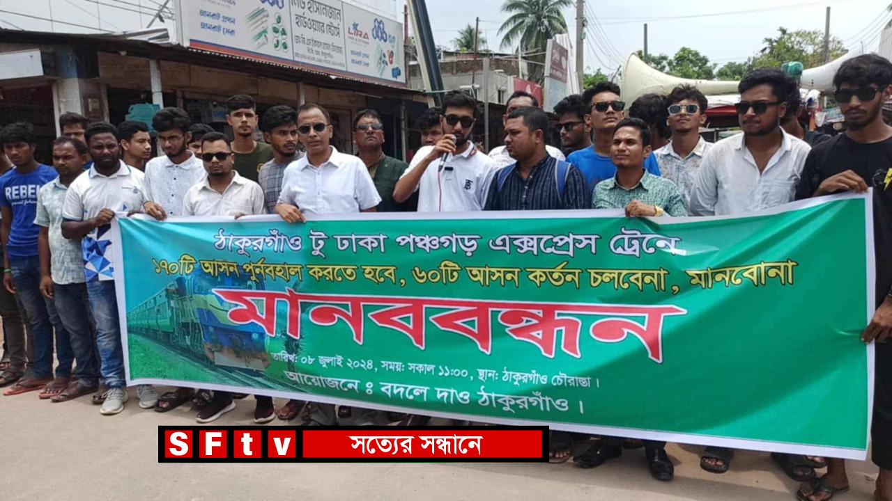 আন্তঃনগর ট্রেনের আসন সংখ্যা কমানোয় ঠাকুরগাঁওয়ে মানববন্ধন