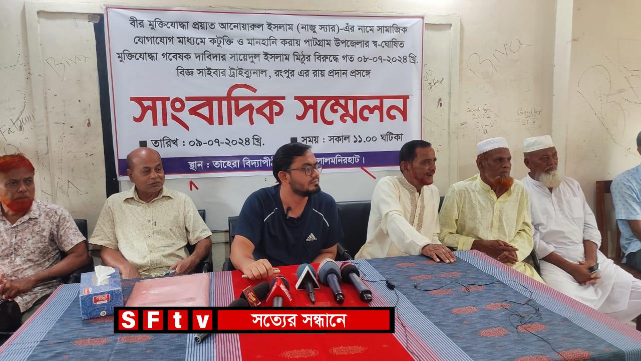পাটগ্রাম উপজেলার সুনামধন্য শিক্ষা প্রতিষ্ঠান তাহেরা বিদ্যাপীঠের প্রতিষ্ঠাতা ও উপজেলা আওয়ামী লীগের সভাপতি প্রয়াত বীর মুক্তিযোদ্ধা আনোয়ারুল ইসলাম নাজুর বিরুদ্ধে মুক্তিযোদ্ধা গবেষক হিসেবে পরিচিত সায়েদুল ইসলাম মিঠু অপপ্রচার ও সামাজিক যোগাযোগ মাধ্যমে মানহানিকর বানোয়াট তথ্য প্রচার করে জনমনে ব্যাপক বিভ্রান্ত সৃষ্টি করেন বলে অভিযোগ উঠে। ২০২০ সালে সাইবার ট্রাইবুনালে তার বিরুদ্ধে দায়ের করা সিটি কেস ১৩০/২২ আমলে নিয়ে আদালত দীর্ঘ চার বছর পর তাকে চলতি মাসের ৭ই জুলাই ২০১৮ এর ২৫(২) ও ২৯(১) এর প্রত্যেক ধারায় সাজা প্রদান করেন। বাদীপক্ষের প্রয়াত বীর মুক্তিযোদ্ধা আনোয়ারুল ইসলাম নাজু'র পুত্র মোহাম্মদ শোয়ায়েবুল ইসলাম সোয়েব লিখিত বক্তব্য পাঠ করে এই রায়ে অসন্তুষ্ট হয়ে তার সাজা বৃদ্ধির দাবি জানিয়ে মঙ্গলবার (৯ জুলাই) দুপুরে সংবাদ সম্মেলন করেন। তিনি বলেন, সায়েদুল ইসলাম মিঠু স্বঘোষিত গবেষক। আমার মৃত বাবার নামে তিনি ফেসবুকে কটুক্তি করেছেন। তিনি ভুয়া মুক্তিযোদ্ধা হিসেবে অপপ্রচার চালিয়েছেন। এছাড়াও বাবার নামে ভবন নিয়েও মিথ্যা প্রচার চালান তিনি। মুলত তিনি তাহেরা বিদ্যাপীঠের সভাপতি হতে না পেরে এতকিছু করেছেন। তাই সাজার যে রায় হয়েছে সেটা বৃদ্ধির জন্য আমরা এই দাবি জানিয়েছি। এবিষয়ে সায়েদুল ইসলাম মিঠুর সঙ্গে যোগাযোগ হলে তিনি জানান, আমার যদি ৭ বছরের জেলও হয় তবুও বলবো তিনি ভুয়া মুক্তিযোদ্ধা ছিলেন। কারণ এসবের সব প্রমাণ আছে। আর প্রতিষ্ঠানের সভাপতি হওয়া না হওয়া নিয়ে যে কথা বলা হয়েছে তা অমুলক বলে দাবি করেন। তাদের এসব অভিযোগ ও সংবাদ সম্মেলনের বিরুদ্ধে তিনিও সংবাদ সম্মেলন করবেন বলে অবগত করেন। সংবাদ সম্মেলনে সাবেক কমান্ডার বীর মুক্তিযোদ্ধা এএইচ এম সালাউজ্জামান ফারুক, সাবেক কমান্ডার জাকির হোসেন, সাবেক ডিপুটি কমান্ডার বীর মুক্তিযোদ্ধা মোশাররফ হোসেন, বিদ্যালয় পরিচালক মণ্ডলির সদস্য বাবু রতন কুমার সাহা, আহসান হাবীব স্বপন, অধ্যক্ষ আহসান উল হাবিব, উপজেলা আওয়ামিলীগের সহ-দফতর সম্পাদক ও সহকারী শিক্ষক জাহাঙ্গীর আলম সাদ্দামসহ আরও অনেকে উপস্থিত ছিলেন।