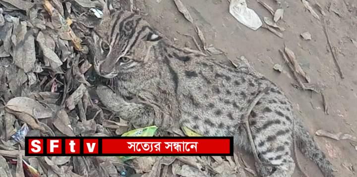 ধোপারচালা উপজাতি সরকারি প্রাথমিক বিদ্যালয়ের প্রধান শিক্ষক স্বপন সরকার জানান, সকাল ৯টার দিকে বাঘের মতো দেখতে প্রাণীটিকে সড়কের পাশে ধানখেতে পড়ে থাকতে দেখেন গ্রামবাসী। পরে স্থানীয় লোকজন প্রাণীটিকে দেখতে সেখানে ভিড় করেন। পায়ে আঘাত পাওয়ায় লোকজন দেখেও প্রাণীটি পালাতে পারেনি। এরপর গ্রামবাসী প্রাণীটির গলায় ও পায়ে রশি দিয়ে ধোপারচালা বাজারে বেঁধে রাখেন।