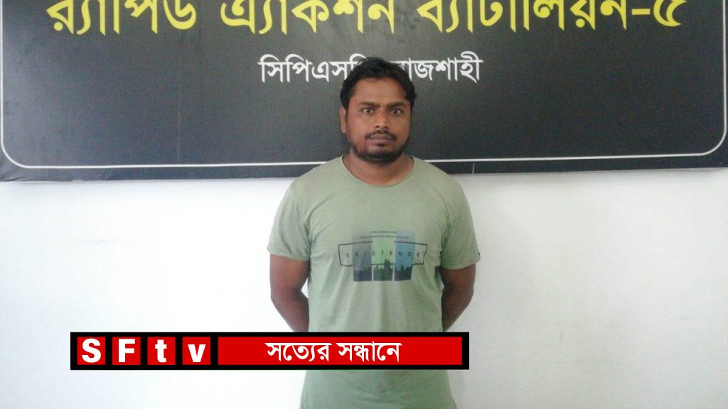 গ্রেফতার মোঃ রমজান রাজমাহী মহানগরীর মতিহার থানাধীন ধরমপুর পূর্বপাড়া গ্রামের মৃত ইয়াজ উদ্দিনের ছেলে। মঙ্গলবার (১০ জুলাই) দুপুরে এক প্রেস বিজ্ঞপ্তির মাধ্যমে এতথ্য নিশ্চিত করেছে সিপিসি-৩, র্যাব-৫ ক্যাম্প।