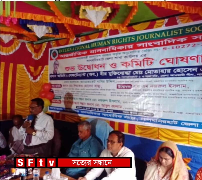 আন্তর্জাতিক মানবাধিকার সাংবাদিক সংস্থা লালমনিরহাট জেলা শাখার কার্যালয় শুভ উদ্বোধন ও জেলা কমিটি ঘোষণা করেন এস এম নজরুল ইসলাম চেয়ারম্যান, আন্তর্জাতিক মানবাধিকার সাংবাদিক সংস্থা। বুধবার (১০ জুলাই) সকালে লালমনিরহাট জেলার হাতীবান্ধা উপজেলা সোনালী ব্যাংক চত্বরে জেলা শাখা কার্যালয়ের শুভ উদ্বোধন ও কমিটি ঘোষণা হয়।