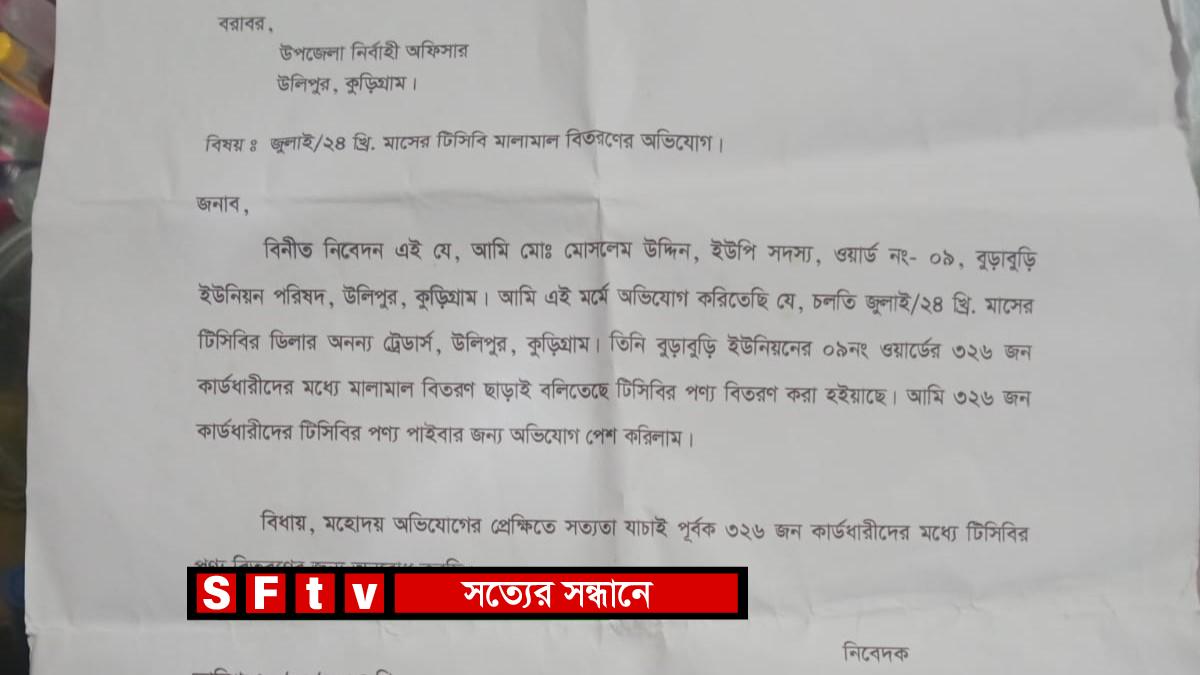 কুড়িগ্রামের উলিপুরের টিসিবি’র ডিলার কর্তৃক খাদ্য পণ্য কালোবাজারি