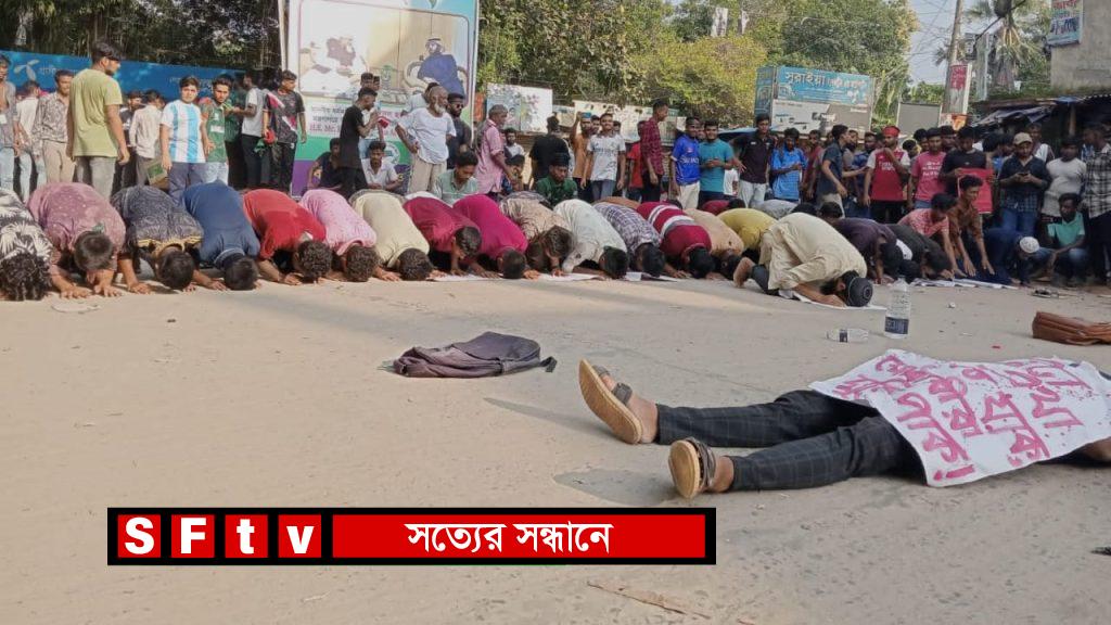এতে ঢাকা-ময়মনসিংহ সড়কের যাতায়াত বন্ধ হয়ে যায়।এ অবস্থায় শুধু অ্যাম্বুলেন্স এবং ফায়ার সার্ভিসের গাড়ি যাতায়াতের সুযোগ দেন বিক্ষোভকারিরা। বিক্ষোভের মধ্যে আসর নামাজের আজান দিলে, থানা মোড়ের বটতলায় সড়ক অবোরধ করে নামাজ আদায় করতে দেখা যায়। এসময় শিক্ষার্থীরা বলেন, হামলা মামলা করে সাধারণ শিক্ষার্থীদের দমিয়ে রাখা যাবে না। দাবি আদায় করেই ঘরে ফিরবো আমরা।