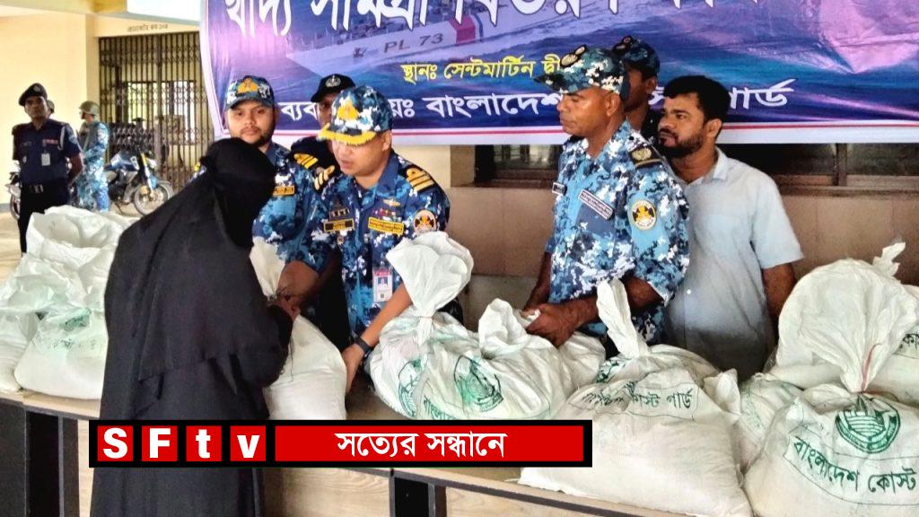 টেকনাফের সেন্টমার্টিনে দ্বীপবাসীদের মাঝে খাদ্য সামগ্রী বিতরণ করেছে বাংলাদেশ কোস্টগার্ড। শুক্রবার ২ আগস্ট দুপুরে কোস্টগার্ড সদর দপ্তরের মিডিয়া কর্মকর্তা লেফটেন্যান্ট কমান্ডার সাব্বির আলম সুজন এ তথ্য জানান। তিনি বলেন, প্রতিষ্ঠালগ্ন থেকে অদ্যাবধি বাংলাদেশ কোস্টগার্ড উপকূল/চরাঞ্চলের সুবিধাবঞ্চিত মানুষের বিভিন্ন প্রয়োজনে সবসময় এগিয়ে এসেছে। সাম্প্রতিক সময় বৈরী আবহাওয়া ও সমুদ্র উত্তাল থাকায় সেন্টমার্টিন এ খাদ্য সামগ্রী পরিবহন কিছুটা দুরুহ হওয়ায় বাংলাদেশ কোস্টগার্ড জাহাজ মনসুর আলী সেন্টমার্টিনে খাদ্য সামগ্রী পৌছে দেয়। সেন্টমার্টিনদ্বীপের ২০ শয্যা বিশিষ্ট হাসপাতালে দ্বীপবাসিদের মাঝে দুইদিন ব্যাপী খাদ্য সামগ্রী বিতরণ কর্মসূচি শুরু করেছে কোস্টগার্ড। এই কর্মসূচির আওতায় ২ আগস্ট শুক্রবারে দ্বীপবাসিদের মাঝে বিভিন্ন খাদ্যসামগ্রী প্রদান করেছে বাংলাদেশ কোস্টগার্ড জাহাজ মনসুর আলী। তিনি আরও বলেন, ত্রাণ বিতরণ কার্যক্রমে অধিনায়ক বিসিজিএস মনসুর আলী কমান্ডার মোহাম্মদ রাশেদুল করিম, (এনডি), এএফডব্লিউসি, পিএসসি, বিএন ও স্টেশন কমান্ডার সেন্টমার্টিন লেঃ কমান্ডার মোঃ মিজানুল হক ইমরান, (এক্স) বিএনসহ স্থানীয় জনপ্রতিনিধিগণ উপস্থিত ছিলেন। দুই দিনব্যাপী এই কার্যক্রমে প্রায় এক হাজার পরিবারকে বিভিন্ন খাদ্য সামগ্রী প্রদান করা হচ্ছে