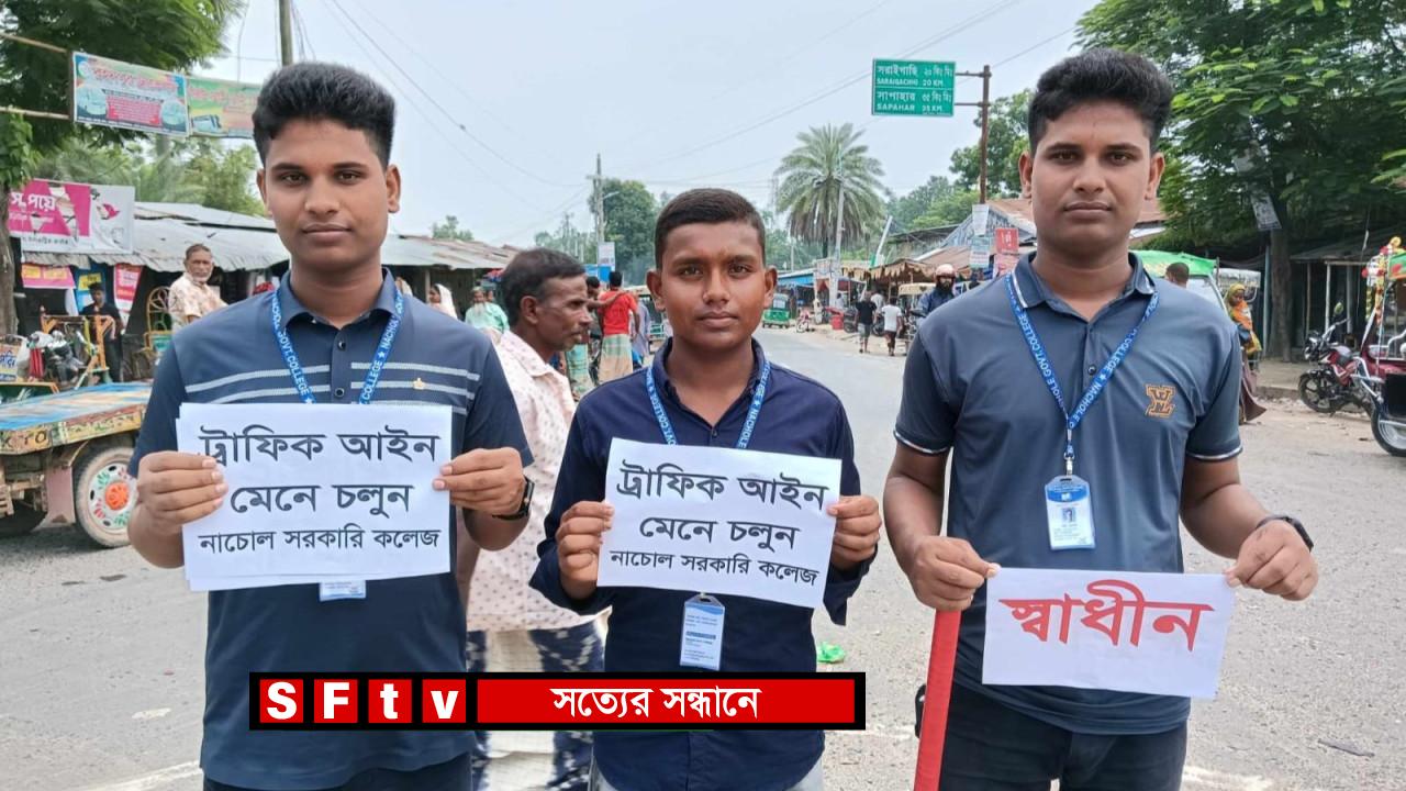 সকাল থেকেই গোমস্তাপুরে বিভিন্ন মোড়ে মোড়ে উদ্যোগে অবস্থান করে।যাতে যানজট না হয়।’ এতে অনেক সাধারণ মানুষ, শিক্ষার্থীদেরকে বিভিন্ন খাবার দিয়ে সহযোগিতা করেছেন অনেক পথচারী।এবং দুপুরের কর্মরত শিক্ষার্থীদের কে খাবারের ব্যবস্থা করেছেন বাজারে এক চাচা যেসব প্রতিষ্ঠান থেকে শিক্ষার্থীরা ট্রাফিকের দায়িত্ব পালন করেছেন: নাচোল সরকারি কলেজর ছাত্ররা এবং স্থানীয় স্কুলের ছাত্রছাত্রীরা । আরও ছিলেন: নাচোল সরকারি কলেজের শিক্ষার্থী মোঃ তুহিন, সাহিন, হেলাল উদ্দিন , মেহেদি হাসান এদের সকলেই বাজার মনিটরিং করেছেন: নাচোল সরকারি কলেজের ছাত্র মোঃ তুহিন বলেন এ অবস্থায় বাজার বাসীকে স্বাভাবিক অবস্থায় ফিরিয়ে আনা আমাদের দায়িত্ব। এই দায়িত্ব বোধ থেকে সড়কে যানজট নিয়ন্ত্রণে নেমেছি।ট্রাফিক পুলিশ সদস্যরা দায়িত্বে না আসা পর্যন্ত এই কাজ চালিয়ে যাব।’পথচারীরা বলেন, ‘আমরা খুবই খুশি। সাধারণ শিক্ষার্থীরা রাস্তায় যানজট নিরসনের জন্য কাজ করছে। এতে আরো বেশি ভালো লাগছে।’ তারা বলেন, নতুন উদ্যোগে, নতুন উদ্যমে দেশটি এগিয়ে যাক।ভ্যান চালক জসিম জানান, ছাত্ররা ট্রাফিকের দায়িত্ব পালন করছে, দেখে খুব ভালো লাগছে।
