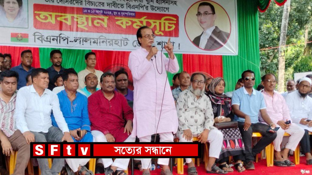 জেলা বিএনপির উদ্যোগে সকালে লালমনিরহাট মিশনমোড়ে হামার বাড়ির সামনে এ অবস্থান কর্মসূচি পালিত হয়েছে। কর্মসূচির দ্বিতীয় দিনে জেলা বিএনপির সভাপতি ও কেন্দ্রীয় কমিটির রংপুর বিভাগীয় সাংগঠনিক সম্পাদক সাবেক উপমন্ত্রী আসাদুল হাবিব দুলু এতে প্রধান অতিথি হিসেবে বক্তব্য রাখেন। জেলা বিএনপির সহসভাপতি অ্যাডভোকেট রফিকুল ইসলামের সভাপতিত্বে অনুষ্ঠিত এ অবস্থান কর্মসূচিতে বক্তারা অবিলম্বে ছাত্রজনতার হত্যাকারীদের গ্রেফতার ও বিচারের দাবি জানান।