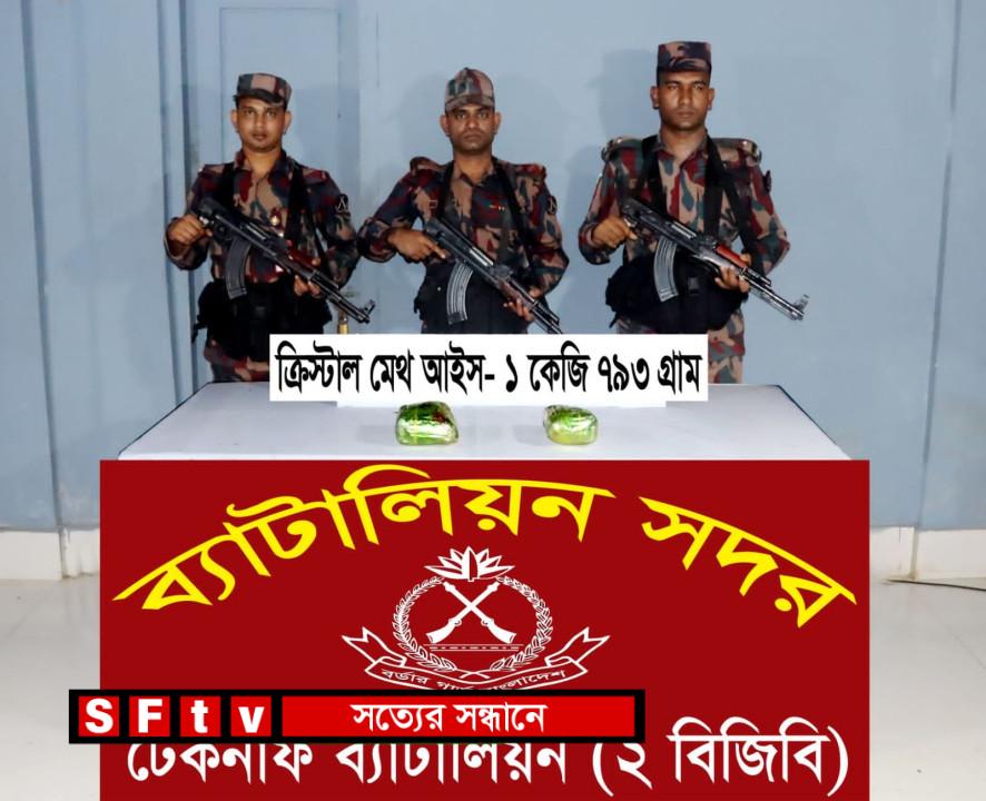 গোপন সংবাদের ভিত্তিতে টেকনাফ পৌরসভার নাইট্যংপাড়া সীমান্ত এলাকার পরিত্যক্ত একটি বস্তি বাড়িতে পাচারের উদ্দেশ্যে মায়ানমার থেকে আনীত মাদকদ্রব্য লুকায়িত রয়েছে। এমন সংবাদের ভিত্তিতে টেকনাফ ব্যাটালিয়ন সদরের একটি মাদকবিরোধী আভিযানিক দল উক্ত স্থানে গমন করে তল্লাশি অভিযান পরিচালনা করে। এসময় বিজিবির উপস্থিতি টের পেয়ে রাতের অন্ধকারের সুযোগে দুইজন ব্যক্তি ঘরের পিছন দিয়ে দ্রুত পালিয়ে যায়। পরবর্তীতে টহলদল তল্লাশি চালিয়ে পরিত্যক্ত ঘরের এক কোণে গর্ত খুঁড়ে জাল দিয়ে মোড়ানো একটি প্লাস্টিকের ব্যাগের ভিতর থেকে ১ কেজি ৭৯৩ গ্রাম ক্রিস্টাল মেথ আইস উদ্ধার করতে সক্ষম হয়।