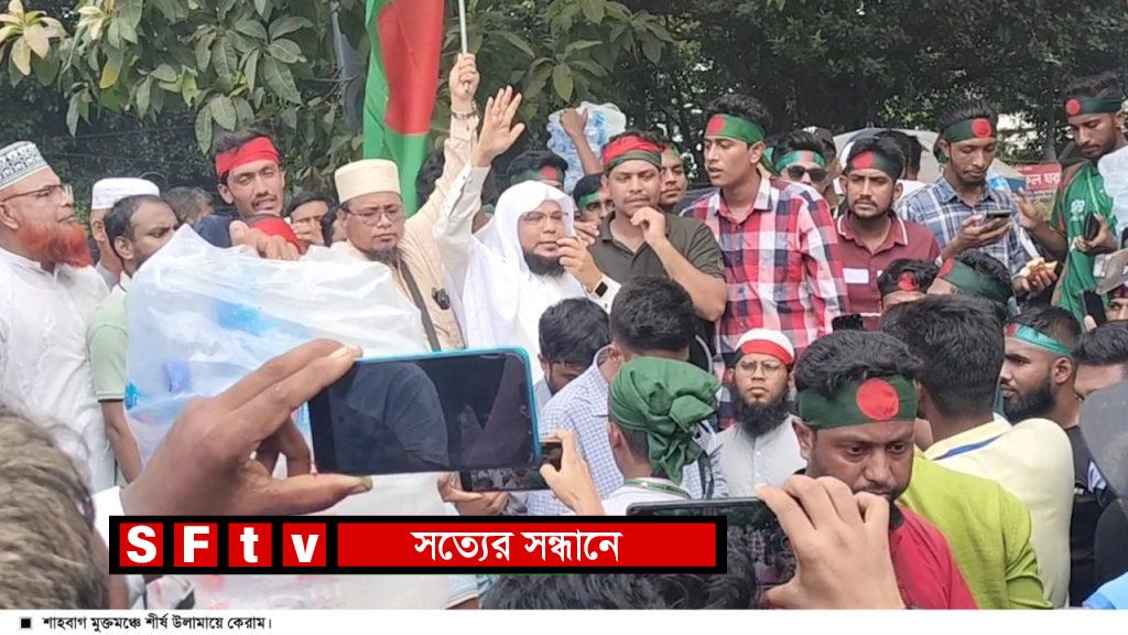 আজ ১৫ আগস্ট সকালে শাহবাগ মুক্তমঞ্চ ও সাংস্কৃতিক মঞ্চে সম্মিলিত উলামা মাশায়েখ পরিষদের মহাসচিব ড. মাওলানা খলিলুর রহমান মাদানীর নেতৃত্বে দেশের শীর্ষ ওলামায়ে কেরাম উপস্থিত হয়ে ছাত্র-জনতার সাথে একাত্মতা প্রকাশ করেন। এসময় আরও উপস্থিত ছিলেন অধ্যক্ষ মাওলানা মোশারফ হোসেন, মাওলানা ফখরুদ্দিন আহমদ, অধ্যক্ষ মাওলানা ডক্টর মহিউদ্দিন, মুফতি ফখরুল ইসলাম, মুহাদ্দিস মাহমুদুল হাসান, মাওলানা নুরুজ্জামান নোমানী, মাওলানা সালেহ সিদ্দিকী, মুফতি শফিকুর রহমান, অধ্যক্ষ মাওলানা গোলাম আযম, ডঃ মাওলানা কামরুল ইসলাম শাহীন, মুফতি তাজুল ইসলাম, মুফতি রবিউল ইসলাম, মুফতি বাকিবিল্লাহ প্রমুখ।