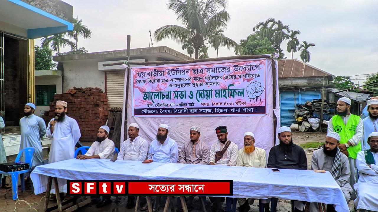 আজ ১৯ আগষ্ট রোজ সোমবার বরিশালের হিজলা উপজেলার মৌলভীরহাট বাজারে বৈসম্যবিরোধী ছাত্র আন্দোলনে শহিদদের রুহের মাগফিরাত ও অসুস্থদের সুস্থ কামনায় আলোচনা ও দোয়া মাহফিল অনুষ্ঠিত হয় ৷ অনুষ্ঠানের আয়োজন করে হিজলা উপজেলা ছাত্র জনতা ৷ দোয়া মোনাজাত শেষে সৈরাচার শেখ হাসিনার ফাসির দাবিতে মিছিল করেন তারা ৷