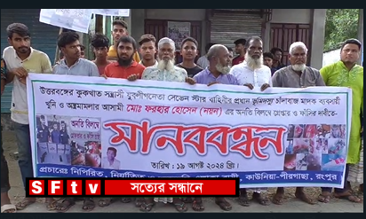 রংপুরের কাউনিয়া উপজেলার কুর্ষা ইউনিয়ন যুবলীগ কর্মী ফরহাদ হোসেন নয়নের গ্রেফতারের দাবিতে মানববন্ধন ও বিক্ষোভ করেছে তার নিজ এলাকা কাউনিয়া ও পীরগাছা উপজেলার লোকজন। আজ দুপুরে কাউনিয়া উপজেলার কুটির পাড়া এলাকায় মানববন্ধন ও বিক্ষোভ করে এলাকার প্রায় এক হাজারেরও বেশি মানুষ। এসময় এলাকাবাসী অভিযোগ করেন, ফরহাদ হোসেন নয়ন মধ্যযুগীয় কায়দায় অত্যাচার-নির্যাতন, হামলা-লুটপাট, খুনের সাথে জড়িত ছিলো।