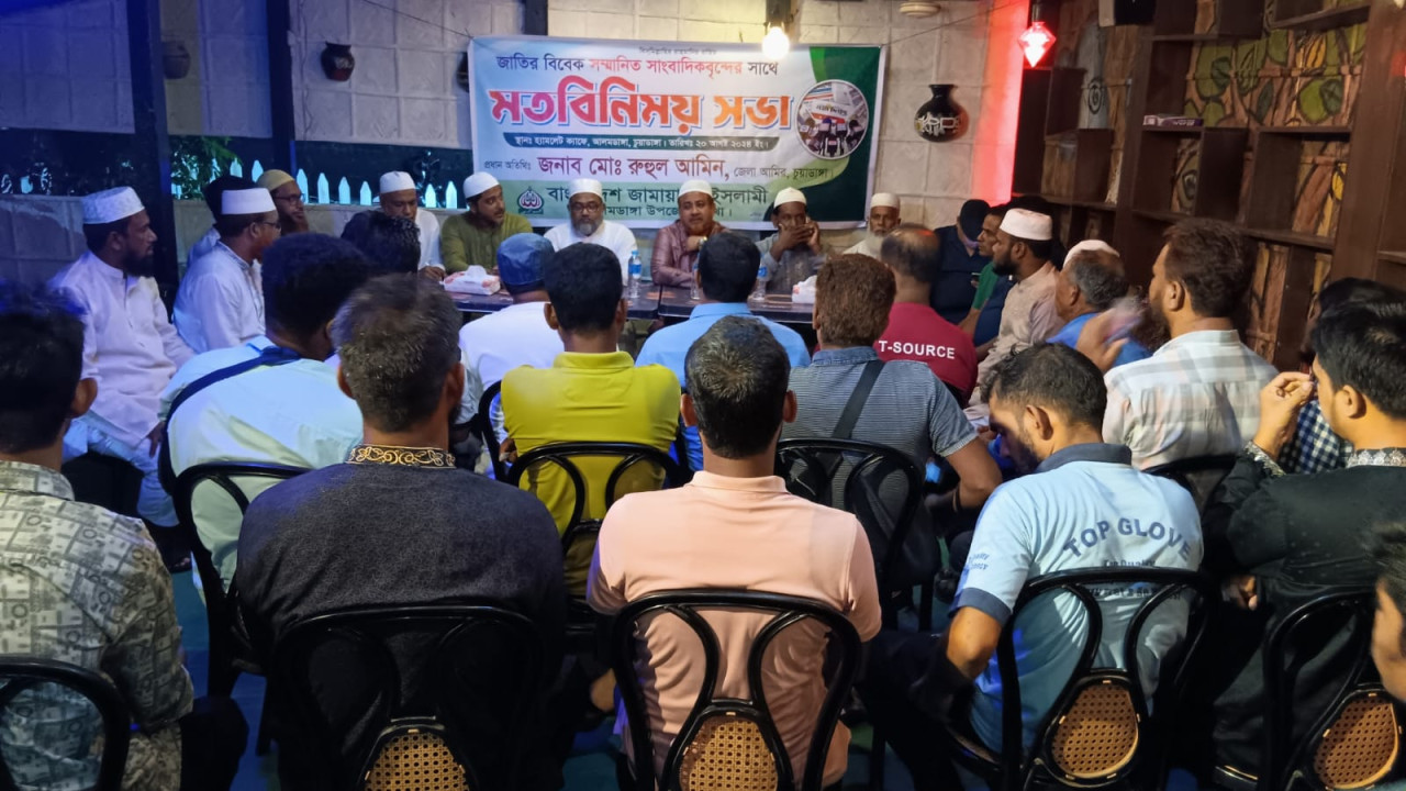 সাংবাদিকদের মতবিনিময় সময় প্রধান অতিথি জেলা জামাতের আমির তার বক্তব্যই বলেন ৫ই আগষ্ট ছাত্র জনতার আন্দোলনের ফলে স্বৈরশাসনের পতনের মাধ্যমে এ দেশের বিপ্লবা ছাত্র সমাজ দেশের নির্যাতিত জনগন, মুক্তিকামি সুশিল সমাজ, বঞ্চিত পেশাজীবী মানুষ, আরো একবার স্বাধিনতার স্বাদ গ্রহন করেছে। আপনাদের সাথে আজকের এই মত বিনিময় কালে সেই সব অকুতভয় ছাত্র সমাজকে জানায় কৃতজ্ঞচীত্তে সালাম। যারা রক্ত ঝরিয়ে দেশেরতরে জীবন উৎসর্গ করেছে তাদের জন্য আল্লাহর দরবারে শাহাদতের মর্যদা কামনা করছি। পাশে থেকে যারা এই আন্দোলনকারীদের সাহস জুগিয়েছে তাদের জন্য কল্যান কামনা করছি। * জাতির বিবেক সাংবাদিক বন্ধুগন বাংলাদেশ জামায়াতে ইসলামীর এই ব্যানার নিয়ে আপনাদের সাথে মত বিনিময় করার সযোগ থেকে আমরা ছিলাম বঞ্চিত আজকে এই শুভ ক্ষনটি তাই ধরে রাখতে চাই তুলে রাখতে চাই ইতিহাসের পাতায়। দেশে গণতন্ত্রের নামে একদলীয় শাসন শুরু হয়েছিল আজ থেকে ১৬ বছর পূর্বে। দেশের সকল সেক্টরে ছিল দলীয় করনের দৃশ্যমান চিত্র। তথাকথিত বৃদ্ধিজীবী, সুশিল সমাজ, সাংবাদিক, লেখক কেউ এর বাহিরে ছিল না। সরকারের যৌক্তিক সমালোচনা করার সাহস যারা দেখিয়েছে তাদের কে রাজনৈতিক ট্যাগ লাগিয়ে একপেশে করেছে কখনও বা মামলা, হামলা, এমনকি জেলে পুরে রাখতেও শেখ হাসিনার সরকার পিছপা হয়নি। ডিবি অফিসের ভয়ংকার চিত্র, আয়নাঘরের মত লোমহর্ষক ঘটনা, সাদা পোষাক ব্যাহনার দূরদান্ত দাপট। সরকারী দলের ক্যাডার ব্যাহনীর অসহানয় আচরণ, আফস গুলোতে সুদ-ঘুষ বানিজ্য ছিল এদেশের প্রতিদিনের নৈমিত্তিক চিত্র। সাধারণ মানুষ এসকল অপকর্মের বিরুদ্ধে বিদ্রোহ করতে পারিনি সত্য কিন্তু তাদের দীর্ঘশ্বাস ৫ ই আগস্ট নিয়ে আসতে সাহায্য করেছে। সম্মানিত সাংবাদিক বন্ধুগন: বাংলাদেশ জামায়াতে ইসলামীর ভিষন- ‘মানুষের কল্যান সাধন করা, দেশ পরিচালনায় সৎ যোগ্য মানুষ তৈরী এবং আল্লাহর সন্তুষ্টি অর্জন। এই ভিষন কে দ্রুত বাস্তবায়ন করার জন্য জামায়াতের সকল স্তরের কর্মী বাহিনী সততার সাথে কাজ করে যাচ্ছে। আমাদের চলার পথে যেখানেই যে দোষ ক্রাট আপনারা দেখবেন তা নিঃসংকোচে গঠন মূলক সমালোচনা করবেন। এদেশে যেন কোনো ব্যাক্তিকে কোন রাজনৈতিক দল, গোষ্ঠী, কিংবা ধর্মীয় কোন ব্যাক্তিকে বা গোষ্ঠীকে কেউ কোন ট্যাগ লাগিয়ে যেনো কেউ কাউকে হেনস্তা করতে না পারে তার দিকে আপনারা লক্ষ্য রাখবেন।
