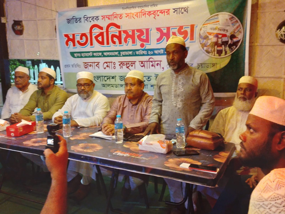 ২০ আগস্ট মঙ্গলবার সন্ধ্যায় চুয়াডাঙ্গার আলমডাঙ্গা জামায়াতের উপজেলার শাখার আয়োজনে শহরের হ্যামলেট ক্যাফে-তে এ মতবিনিময় সভা অনুষ্ঠিত হয়।
