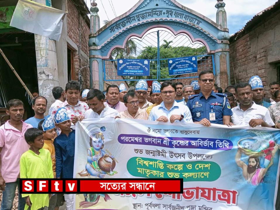 সাগর আহমেদ জজ : নেত্রকোনার পূর্বধলা আজ সোমবার নানা আয়োজনে সনাতন ধর্মাবলম্বীদের ধর্মীয় অনুষ্ঠান ভগবান শ্রীকৃষ্ণের জন্মাষ্টমী পালিত হয়েছে। এ উপলক্ষে পূর্বধলা সার্বজনীন পূজা মন্দিরের উদ্যোগে নানা কর্মসূচি পালন করা হয়। কর্মসূচির মধ্যে ছিল আলোচনা সভা ও বর্ণাঢ্য শোভাযাত্রা। পূজা উদযাপন কমিটির সভাপতি তরুণ কুমার রায় এর সভাপতিত্বে মন্দির প্রাঙ্গণে অনুষ্ঠিত আলোচনা সভায় প্রধান অতিথি হিসেবে উপস্থিত ছিলেন উপজেলা নির্বাহী অফিসার মোঃ খবিরুল আহসান। বিশেষ অতিথি হিসেবে উপস্থিত ছিলেন পূর্বধলা থানার ভারপ্রাপ্ত কর্মকর্তা (ওসি) মোহাম্মদ তাজুল ইসলাম।