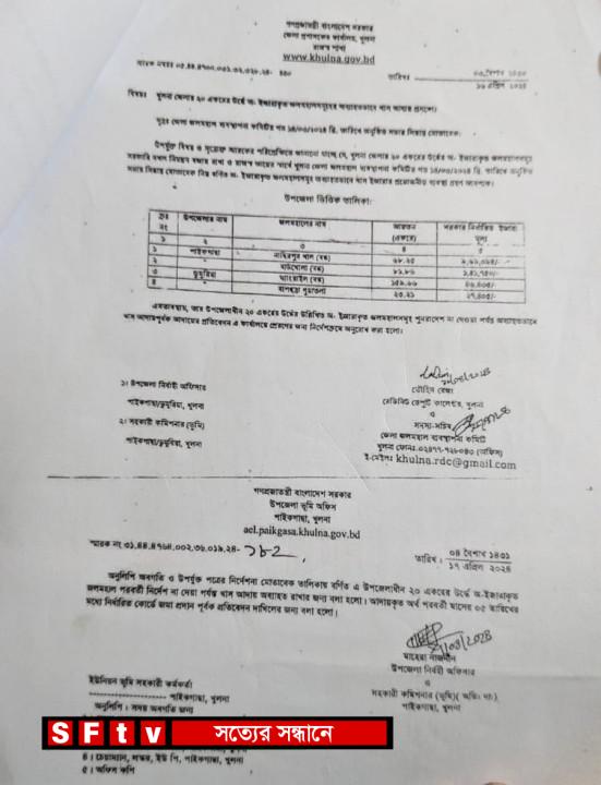 এম জালাল উদ্দীন: পাইকগাছায় ২০ একর উর্ধে অ-ইজারাকৃত খাশ খাল এর খাশ আদায় আদায়ের নির্দেশনা দিয়েছেন রেভিনিউ ডেপুটি কালেক্টর ও খুলনা জেলা জলমহল কমিটির সদস্য সচিব তৌহিদ রেজা। প্রাপ্ত তথ্য সূত্রে জানা গেছে, গত ইং- ১৪/০৪/২০২৪ তারিখ ০৫.৪৪.৪৭০০.০৩১.৩২.৩২৮.২৪. ৪৪০ নম্বর স্মারকে জেলা জলমহল ব্যবস্থাপনা কমিটির অনুষ্ঠিত সভার সিদ্ধান্ত মোতাবেক ২০ একরের উর্ধের খাশ খাল এর খাশ আদায়ের নিমিত্তে পাইকগাছা উপজেলার লস্কর ইউনিয়নের বাউখোলা- ৮১.৮৬ একর খাশ খালটির অব্যাহতভাবে খাশ আদায়ের জন্য পাইকগাছা উপজেলা নির্বাহী অফিসার ও সহকারী কমিশনার (ভূমি)কে নির্দেশনা দেওয়া হয়। সে মোতাবেক পাইকগাছা উপজেলা নির্বাহী অফিসার মাহেরা নাজনীন, গত ইং- ১৭/০৪/২০২৪ তারিখ ৩১,৪৪,৪৭৬৪,০০২,৩৬,০১৯,২৪,১৮২ নম্বর স্মারকে লস্কর ভূমি অফিস কর্মকর্তা মোঃ কামরুল হাসান’কে উক্ত খাশ খালের খাশ আদায়ের জন্য নির্দেশনা প্রদান সহ পরবর্তী নির্দেশ না দেওয়া পর্যন্ত খাশ আদায় অব্যাহত রাখার জন্য বলা হয়। এদিকে উপজেলা নির্বাহী অফিসারের নির্দেশক্রমে লস্কর ভূমি অফিসের কর্মকর্তা মোঃ কামরুল হাসান গত ইং- ১৫/০৮/২০২৪ তারিখ উল্লেখিত বাউখোলা (বদ্ধ) জলমহল বাংলা ১৪৩১ সনের ৩০শে চৈত্র পর্যন্ত খাশ আদায়ের নিমিত্তে অত্র অফিসের অফিস সহায়ক আরাফাত হোসেন গাজী ও লস্কর ইউনিয়নের মোঃ সাদ্দাম হোসেন কে সরকারি দখল ও সরকারি রাজস্ব আদায়ের স্বার্থে নিয়োগ প্রদান করেন। এবিষয়ে লস্কর ভূমি অফিস কর্মকর্তা মোঃ কামরুল হাসান বলেন, আমি ইউএনও স্যার এবং এসিল্যান্ড স্যারের নির্দেশনায় বাউখোলা (বদ্ধ)খালটি সরকারি দখল ও সরকারি রাজস্ব আদায়ের স্বার্থে দু’জন কে দায়িত্ব দিয়েছি। এছাড়াও তিনি বলেন, গতবছর স্থানীয় নুরুজ্জামান মোল্লা খাশ খাল থেকে অবৈধভাবে মাছ ধরলে ইউএনও স্যার ভ্রাম্যমাণ আদালতের মাধ্যমে শাস্তি প্রদান করেন। পাইকগাছা উপজেলা সহকারী কমিশনার (ভূমি) মোঃ ইফতেখারুল ইসলাম শামীম জানান, বাউখোলা জলমহালের খাস আদায় কার্যক্রম চলমান রয়েছে।