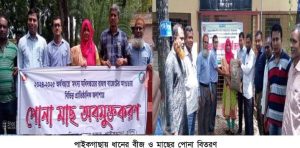 এম জালাল উদ্দীন: পাইকগাছায় ২০২৪-২৫ অর্থবছরে খরিপ-২ মৌসুমে সাম্প্রতিক অতি বৃষ্টি ও নদী ভাঙ্গনে ফলে বন্যায় ক্ষতিগ্রস্থ দেলুটি ইউপির কৃষকদের উফশী রোপা আমন ধান ফসলের আবাদ এবং উৎপাদন বৃদ্ধির লক্ষ্যে ক্ষুদ্র ও প্রান্তিক কৃষকদের মাঝে কৃষি প্রণোদনা কর্মসূচি বাস্তবায়ন এর আওতায়-বিনামূল্যে উপস্থিত থেকে কৃষকদের মাঝে ধানের বীজ বিতরণ করেন উপজেলা নির্বাহী অফিসার মাহেরা নাজনীন। শনিবার সকালে কৃষি অফিস চত্বরে উপজেলা প্রশাসন ও কৃষি সম্প্রসারণ অধিদপ্তরে আয়োজনে উপজেলার দেলুটি ইউনিয়নের ভাঙ্গন কবলিত এলাকার ৪’শ জনকে ৫ কেজি করে ২ মেট্রিক টন বীজ ধান প্রদান করা হয়। অপরদিকে মৎস্য অধিদপ্তরের পক্ষ থেকে ৩৭ টি প্রাতিষ্ঠানিক সরকারী জলাশয়ে ৪৪৫ কেজি রুই জাতীয় মাছের পোনা বিতারণ করা হয়। বেলা সাড়ে ১১ টায় পাইকগাছা উপজেলা পরিষদের পুকুরে মাছের পোনা অবমুক্তি’র মাধ্যমে বিতারণ উদ্ধোধন করেন উপজেলা নির্বাহী অফিসার মাহেরা নাজনীন। এসময়ে উপস্থিত ছিলেন,কৃষি কর্মকর্তা অসীম কুমার দাশ,মৎস্য কর্মকর্তা সৈকত মল্লিক,শিক্ষা কর্মকর্তা বিদ্যুৎ রজ্ঞন সাহা,ইউআরসি ঈমান উদ্দীন, উপ-সহকারী কৃষি কর্মকর্তা তোফায়েল আহমেদ তুহিন সহ অন্যান্য কর্মকর্তাবৃন্দ।