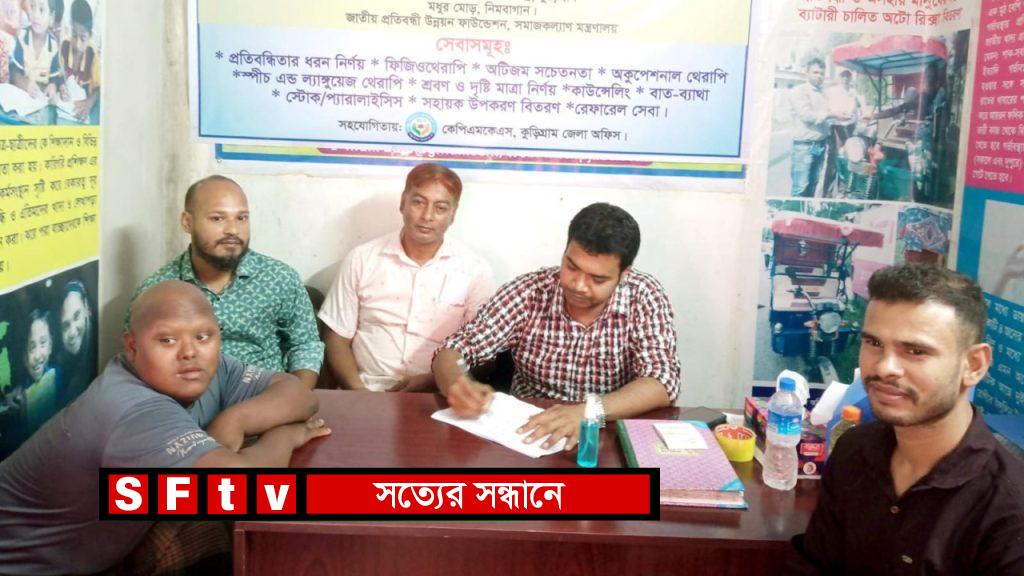 কুড়িগ্রাম জেলা শহরের তালতলা এলাকায় দারিদ্র বিমোচন জনকল্যাণ প্রকল্পের সার্বিক সহযোগিতায় ২ সেপ্টেম্বর’২০২৪ইং সোমবার দিনব্যাপী প্রকল্প কার্যালয়ে প্রতিবন্ধী সেবা ও সাহায্য কেন্দ্র, কুড়িগ্রাম এবং জাতীয় প্রতিবন্ধী উন্নয়ন ফাউন্ডেশনের আয়োজনে এক ভ্রাম্যমান চিকিৎসা সেবা ক্যাম্পিং অনুষ্ঠিত হয়। প্রতিবন্ধী ব্যক্তি এবং প্রতিবন্ধীতার ঝুঁকিতে থাকা ব্যক্তিদের মোবাইল রিহ্যাবিলিটেশন ভ্যানের মাধ্যমে ভ্রাম্যমান চিকিৎসা সেবা ক্যাম্পিং এ আগত রোগীদের বিভিন্ন ধরণের স্বাস্থ্য সেবা প্রদান করা হয়। প্রতিবন্ধীতার ধরণ নির্ণয়, ফিজিওথেরাপী, অটিজম সচেতনতা, অকুপেশনাল থেরাপী, স্পীচ এন্ড ল্যাঙ্গুয়েজ থেরাপী, শ্রবণ ও দৃষ্টিমাত্রা নির্ণয়, কাউন্সেলিং, বাত ব্যাথা, স্টোক প্যারালাইসিস, রেফারেল সেবা সহ সহায়ক উপকরণ বিতরণ করা হয়। ভ্রাম্যমান চিকিৎসা সেবা ক্যাম্পিং এ রোগী দেখেন প্রতিবন্ধী সেবা ও সাহায্য কেন্দ্র, কুড়িগ্রামের কন্সালটেন্ট ডাঃ মোঃ আরিফুর রহমান। মোবাইল থেরাপী ক্যাম্প টিমের সদস্য সংখ্যা ৫ জন উপস্থিত ছিলেন। ৪৩ জন রোগীর স্বাস্থ্য পরীক্ষা, রোগীদের মাঝে ব্যবস্থা পত্র প্রদান, ফিজিও থেরাপী কাউন্সেলিং সহ স্পীচ থেরাপী প্রদান করা হয়। দারিদ্র বিমোচন জনকল্যাণ প্রকল্পের সার্বিক সহযোগিতায় ভ্রাম্যমান চিকিৎসা সেবা ক্যাম্পিং অনুষ্ঠানে উপস্থিত ছিলেন- দারিদ্র বিমোচন জনকল্যাণ প্রকল্পের সহকারী পরিচালক মোঃ রিয়াদ হোসেন, জেলা কো-অর্ডিনেটর মোঃ রাশেদুজ্জামান রাশেদ, থানা সমন্বয়কারী মোঃ জুয়েল মিয়া লাঞ্জু, মাঠকর্মী মোছাঃ আখি আক্তার প্রমূখ।