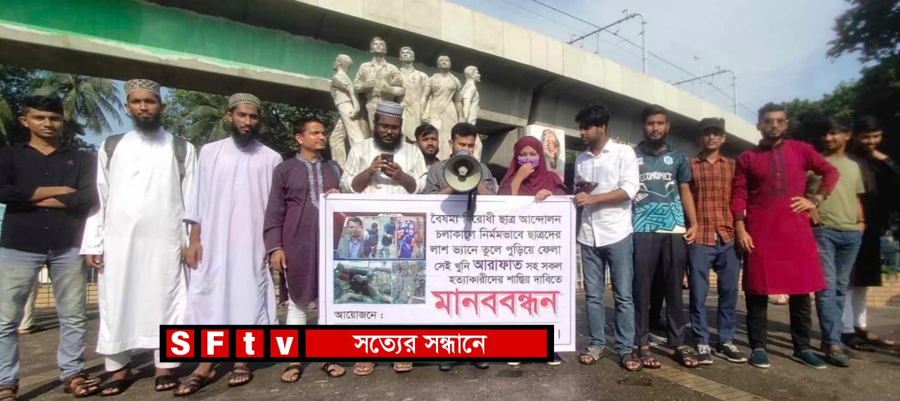 জাহিদ হোসেন : ২ সেপ্টেম্বর রোজ সোমবার বিকাল চার টায় বৈষম্য বিরোধী ছাত্র আন্দোলনে ছাত্রদের নির্মম ভাবে হত্যা করে ভ্যানে লাশের স্তুপ করে পুড়িয়ে দেয় পুলিশ সদস্যরা, চিহ্নিত পুলিশ সদস্য ঢাকা উত্তর জেলা গোয়েন্দা পরিদর্শক আরাফাত কে গ্রেফতার ও বিচারের দাবিতে ঢাকা বিশ্ব বিদ্যালয়ের রাজু ভাস্কর্যের পাদদেশে মানববন্ধন কর্মসূচি পালন করেন ঢাকাস্থ হিজলা উপজেলার সাধারণ শিক্ষার্থীরা। এসময় শিক্ষার্থীরা খুনি আরাফাত সহ ছাত্র হত্যার সাথে জড়িত সকল কে দ্রুত গ্রেফতার করে বিচারের দাবি করেন।