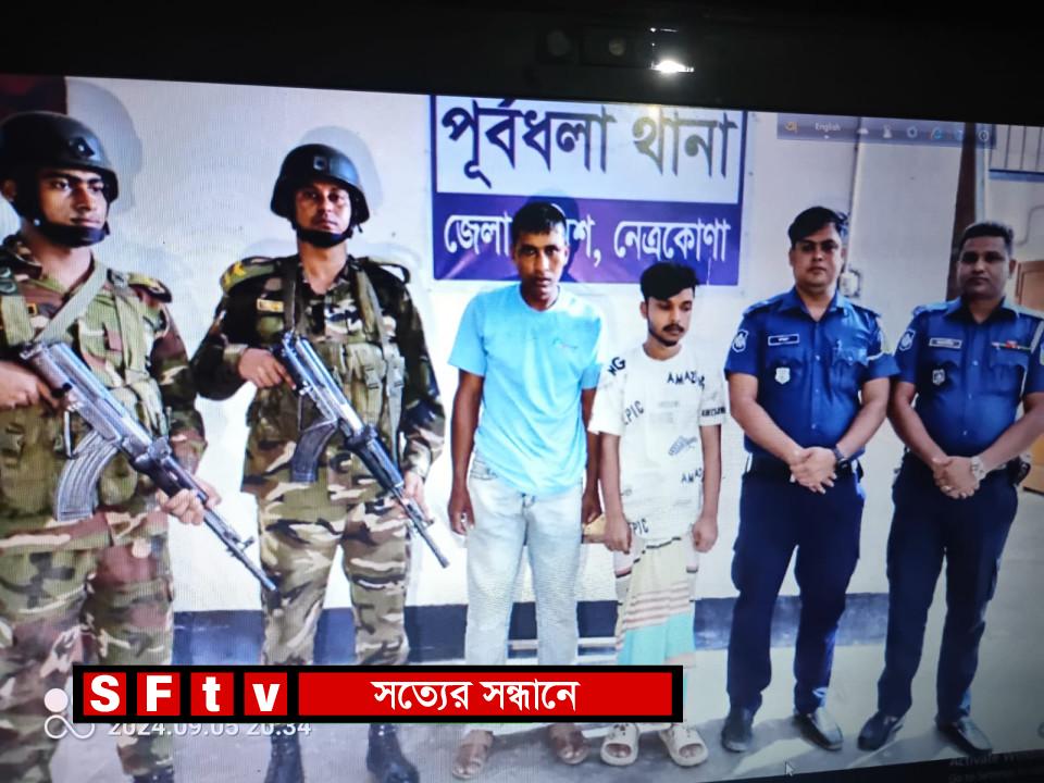 সাগর আহমেদ জজ : নেত্রকোনা পূর্বধলায় গোপনে এক নারীর গোসলের ভিডিও ধারণ করায় দুইজনকে গ্রেফতার করেছে সেনাবাহিনী। আজ বৃহস্পতিবার সকালে সেনাবাহিনীর সদস্যরা তাদের পূর্বধলা থানা পুলিশের কাছে হস্তান্তর করেন। এর আগে বুধবার রাতে তাদের আটক করা হয় গ্রেপ্তার ব্যক্তিরা হলেন, উপজেলার মেঘশিমুল মধ্যপাড়া গ্রামের উজ্জ্বলখান ও দ্বীন ইসলাম। তারা টিকটকার বলে জানিয়েছে সেনাবাহিনী, সেনাবাহিনী সূত্রে জানা গেছে, উজ্জল খান গত বুধবার বিকেলে গোপনে গ্রামের এক নারীর গোসলের ভিডিও ধারণ করেছিলেন। বিষয়টি ওই নারী বুঝতে পেরে চিৎকার করেন, তখন আশপাশের লোকজন এসে উজ্জ্বলকে আটক করে। ততক্ষণে উজ্জ্বল তার মোবাইল ফোনে ধারণ করা গোসলের ভিডিও ডিলিট করে দেন। কিন্তু মোবাইল চেক করতে গিয়ে পূর্বের ধারণ করা গোসলের ভিডিও দেখতে পায়। পরে মোবাইল ফোন রেখে জিজ্ঞাসা করে তাকে ছেড়ে দেওয়া হয়। এ বিষয়ে পড়ে সেনাবাহিনীর ক্যাম্পে অভিযোগ জানায় বক্তব্যের পরিবার। অভিযোগ পেয়ে তৎক্ষণিক অভিযান চালিয়ে উজ্জ্বলকে আটক করে। জিজ্ঞাসাবাদে দ্বীন ইসলাম নামে আরো একজন তার সাথে জড়িত বলে জানান উজ্জ্বল। পরের দিন ইসলাম কেউ অভিযান চালিয়ে আটক করা হয়। পূর্বধলা থানার (ওসি) মোঃ তাজুল ইসলাম এ তথ্য নিশ্চিত করে বলেন এ ঘটনা বক্তভোগী নারীর পরিবারের পক্ষ থেকে ওই দুইজনের বিরুদ্ধে পর্নোগ্রাফি আইনে মামলা হয়েছে। ওই মামলার তাদের গ্রেপ্তার দিকে আজ দুপুরে আদালতে পাঠানো হয়েছে।