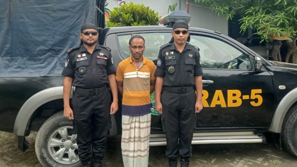 মাহিদুল ইসলাম ফরহাদ: ৫ সেপ্টেম্বর ২০২৪ ইং তারিখ রাত ০৩:৩০ ঘটিকায় সিপিসি-১, চাঁপাইনবাবগঞ্জ, র্যাব-৫, রাজশাহীর একটি আভিযানিক দল চাঁপাইনবাবগঞ্জ জেলার গোমস্তাপুর থানাধীন চৌডালা ইউনিয়নের নন্দলালপুর গ্রামস্থ এলাকায় অভিযান পরিচালনা করে অস্ত্র মামলার যাবজ্জীবন সাজাপ্রাপ্ত পলাতক আসামী মোঃ জাহিরুল ইসলাম (৩৮), পিতা-মোঃ সাদিকুল ইসলাম @ কুলু, গ্রাম-নন্দলালপুর চৌডালা, থানা-গোমস্তাপুর, জেলা-চাঁপাইনবাবগঞ্জ’কে গ্রেফতার করে। উল্লেখ্য, আটককৃত আসামী একজন পেশাদার শীর্ষ অস্ত্র ব্যবসায়ী। গত ০১ জুন ২০২২ ইং সনে অস্ত্র বহনের সময় অস্ত্র সহ হাতেনাতে গ্রেফতার হয় এবং পরবর্তীতে গোমস্তাপুর থানায় তার নামে একটি অস্ত্র মামলা দায়ের হয়। পরবর্তীতে উক্ত আসামী জামিনে মুক্তি নিয়ে পলাতক থাকেন। গত ৩০ জুন ২০২৪ ইং তারিখ আলাদত তাকে অস্ত্র মামলায় যাবজ্জীবন এবং মামলার অন্য ধারায় আরো সাত বছরের কারাদন্ড প্রদান করেন। উপরোক্ত ঘটনায় গ্রেফতারকৃত আসামীকে চাঁপাইনবাবগঞ্জ জেলার গোমস্তাপুর থানায় হস্তান্তর করা হয়েছে।