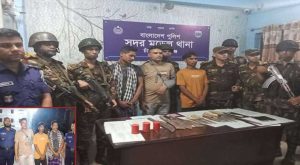 মাহিদুল ইসলাম ফরহাদ: জেলা শহরের ফকির পাড়া এলাকায় দেশীয় অস্ত্রসহ তিনজনকে আটক করেছে যৌথ বাহিনী। বৃহস্পতিবার (৫ আগষ্ট) রাত সাড়ে ১২টা থেকে ভোর সাড়ে ৪টা পর্যন্ত চলে এ অভিযান। বগুড়া সেনানিবাসের ক্যাপ্টেন রাব্বির নেতৃত্বে চাঁপাইনবাবগঞ্জ জেলা প্রশাসক কার্যালয়ের এক্সিকিউটিভ ম্যাজিস্ট্রেট মো. আমিনুল ইসলামের উপস্থিতিতে যৌথ বাহিনীর অভিযান পরিচালনা করা হয়। আটককৃতরা হলেন চাঁপাইনবাবগঞ্জ পৌর এলাকার ফকির পাড়া মহল্লার লালচাঁনের ছেলে মো. জাকির হোসেন, আমজাদ আলীর ছেলে মো. আলম ও মো. আইনাল হকের ছেলে মো. ইদুল। এ সময় তাদের দেওয়া তথ্যের ভিত্তিতে অবিস্ফোরিত ৩টি ককটেল, ১টি রামদা, ৫টি চাপাতি, ১টি কাঠের বাটসহ চাকু, ১০টি ছোট চাকু ও ২টি মোবাইল উদ্ধার করা হয়। পরবর্তীতে আসামিদেরকে উদ্ধারকৃত আলামতসহ চাঁপাইনবাবগঞ্জ সদর মডেল থানায় পুলিশের কাছে হস্তান্তর করা হয়। মামলা দায়ের কার্যক্রম প্রক্রিয়াধীন ছিলো নিউজ তৈরী পর্যন্ত। আটককৃতরা ভাড়াটিয়া হিসেবে টাকার বিনিময়ে বিভিন্ন সময় ককটেল বিস্ফোরণ ঘটাতেন বলে তারা স্বীকার করেছেন। আসামিদের কোনো রাজনৈতিক সংশ্লিষ্টতা পাওয়া যায়নি
