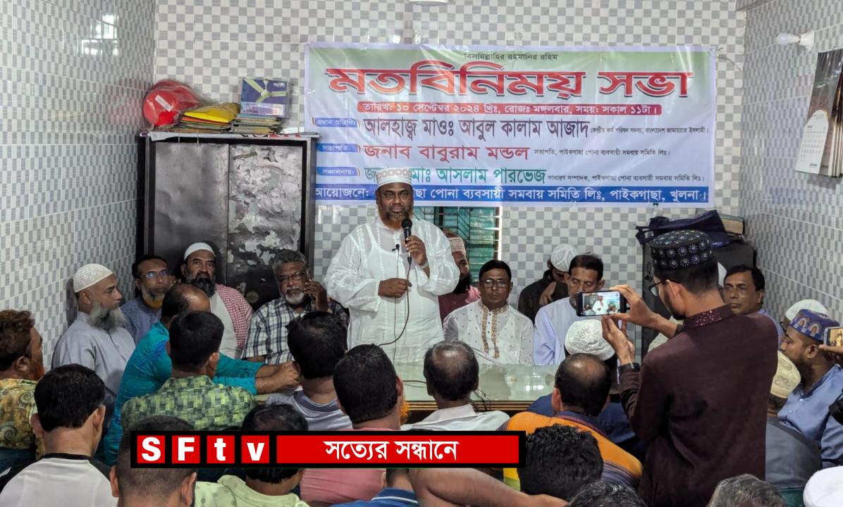 এম জালাল উদ্দীন: চাঁদাবাজি, জমি ও ঘের দখল সহ লুটপাট ভাংচুর যারা করেছেন তাহারা কিন্তু জনগণের বিপক্ষে অবস্থান করেছেন, পাইকগাছা পোনা ও মৎস্য আড়ৎদারি সমবায় ব্যবসায়ী সমিতির মতবিনিময় সভায় প্রধান অতিথির বক্তব্যে এসব কথা বলেন, মাওলানা আলহাজ্ব আবুল কালাম আজাদ।মঙ্গলবার সকাল ১১ টায় পাইকগাছা পোনা ব্যবসায়ী সমবায় সমিতির কার্যলয়ে আয়োজিত মতবিনিময় সভায় সভাপতিত্ব করেন, সমিতির সভাপতি বাবুরাম মন্ডল। ওপরদিকে বেলা ১২ টায় পাইকগাছা মৎস্য আড়ৎদারি সমবায় সমিতি কর্তৃক আয়োজিত মতবিনিময় সভায় সভাপতিত্ব করেন মোঃ জাকির হোসেন।উভয় সভাতে প্রধান অতিথি ছিলেন, জামায়াতে ইসলামীর কেন্দ্রীয় কর্মপরিষদ সদস্য মাওলানা আলহাজ্ব আবুল কালাম আজাদ। এসময়ে বক্তব্য রাখেন, মোর্তোজা আলমগীর রুলু, মোঃ আবুযর গিফারী, তমজিদ আলম, মাওলানা এসএম আমিনুল ইসলাম, এসএম সফিকুল ইসলাম নিযামী, মোঃ আলতাফ হোসেন, জিএম বুলবুল আহমেদ, জিএম আছাদুল হক, বিশিষ্ট পোনা ব্যবসায়ী আঃ জলিল ঢালী, মোঃ সাজ্জাদ সরূার, পোনা সমিতির সাধারণ সম্পাদক আসলাম পারভেজ, গাউস মেম্বার, মৎস্য আড়ৎদারি সমিতির সাধারণ সম্পাদক ওবায়দুল হক মিঠু, ইলিয়াস হোসেন,শামিম হোসেন, বিশিষ্ট ব্যবসায়ী মান্নান সানা, রিপন কুমার মন্ডল, মোঃ মেছের আলী সানা সহ উভয় সমিতির নেতৃবৃন্দ ও জামায়াতে ইসলামীর বিভিন্ন পর্যায়ের নেতা কর্মী বৃন্দ।