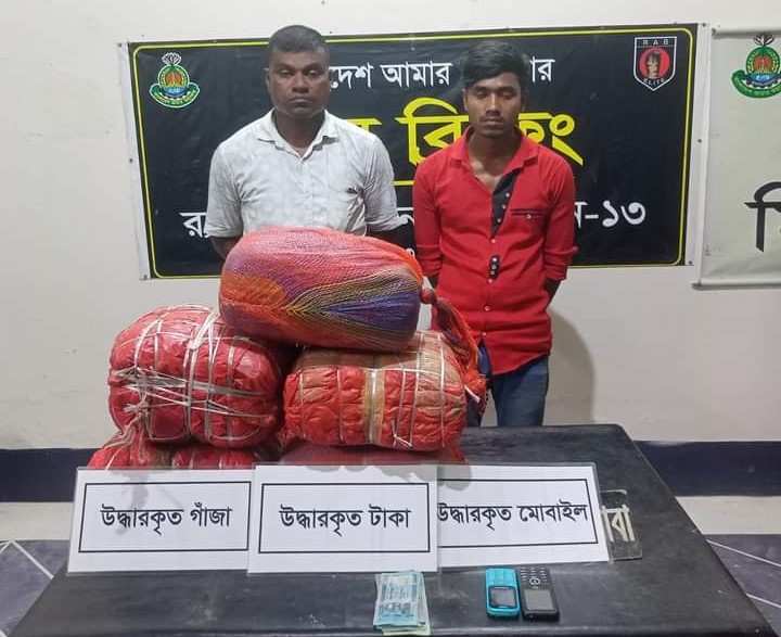 মো;জাহিদুল ইসলাম : গাইবান্ধায় প্রাইভেটকারে করে গাঁজা পাচারকালে জিয়ারুল ইসলাম (২৮) ও শাফিউল (৪০) নামে দুই মাদককারবারিকে গ্রেফতার করেছে র্যাব-১৩। এ সময় তাদের কাছ থেকে ২৬ কেজি গাঁজা উদ্ধার করা হয়েছে। সেই সঙ্গে পাচারকালে ব্যবহৃত একটি প্রাইভেটকারও জব্দ করা হয়েছে। ১৮ সেপ্টেম্বর বুধবার দুপুরে র্যাব-১৩ অধিনায়কের পক্ষে সিনিয়র সহকারী পরিচালক (মিডিয়া) সালমান নূর আলম স্বাক্ষরিত এক সংবাদ বিজ্ঞপ্তিতে এ তথ্য জানানো হয়। এর আগে, ১৭ সেপ্টেম্বর মঙ্গলবার রাতে গাইবান্ধার সাদুল্লাপুর উপজেলার গরুহাটি এলাকা থেকে তাদের আটক করা হয়। গ্রেফতারকৃত জিয়ারুল লালমনিরহাটের পাটগ্রাম উপজেলার জনাব আলীর ছেলে এবং শাফিউল একই এলাকার মৃত এলাহি বকশের ছেলে। র্যাব জানায়, আটকরা রংপুর থেকে গাঁজা নিয়ে প্রাইভেটকারে করে ঢাকার দিকে যাচ্ছিলেন। মঙ্গলবার রাতে গোপন তথ্যের ভিত্তিতে ওই কার থামিয়ে তল্লাশির চালায় গাইবান্ধার র্যাবের সদস্যরা। এ সময় গাড়িতে থাকা ২৬ কেজি গাঁজা পাওয়া যায়। পরে ওই দুই যুবককে আটক করে গাঁজা ও কারটি জব্দ করা হয়। র্যাব আরও জানায়, তারা দীর্ঘদিন থেকে প্রাইভেটকারে করে ঢাকায় গাঁজা পাচার করে আসছিলেন। এ ঘটনায় তাদের বিরুদ্ধে সাদুল্লাপুর থানায় মাদকদ্রব্য নিয়ন্ত্রণ আইনে একটি মামলা করা হয়েছে।