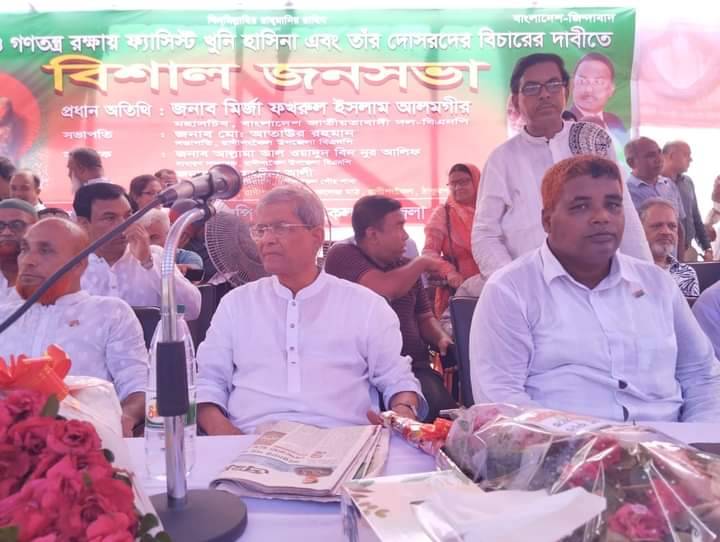 আব্দুল জব্বার : ছাত্র-জনতার গণ আন্দোলনে ৫ আগষ্ট শেখ হাসিনা দেশ ছেড়ে ভারতে পালিয়েছেন। তার আগে অনেক ছাত্র-জনতাকে অন্যায়ভাবে গুলি করে হত্যা করেছে, গুম করেছে। অনেক ছাত্রকে পংগু করে দিয়েছে। এখন ভারতে পালিয়ে সেখান থেকে ষড়যন্ত্র করছে। গত ১৭-১৮ বছরে যে সম্পদ লুট হয়েছে। তার জন্য আন্দোলন করেছি। ছাত্র আন্দোলনে কারো চোখ, কারো পা ভেঙে পঙ্গু হয়েছে । আজ শেখ হাসিনা ভারত চলে গেছে। কিন্তু দেশকে ফকির করে গেছে। সেজন্য আওয়ামী লীগের কোন ক্ষমা নাই শেখ হাসিনা যে অপরাধগুলো করেছে এটা মানবতা বিরোধী অপরাধ এই অপরাধে তার বিচার হবে। ১৯ সেপ্টেম্বর বৃহস্পতিবার দুপুরে ঠাকুরগাঁওয়ের রাণীশংকৈল উপজেলা বিএনপি আয়োজিত রানীশংকৈল ডিগ্রি কলেজ মাঠে জনসভায় প্রধান অতিথির বক্তব্যে মির্জা ফখরুল এসব কথা বলেন। বিএনপি মহাসচিব মির্জা ফখরুল ইসলাম আলমগীর আরো বলেন, কিছু ছাত্র শিক্ষকদের জোরপূর্বক পদত্যাগ করতে বাধ্য করিয়েছে এটা ছাত্রদের কাজ না। মূলত আমরা স্বাধীন হয়েছি,স্বাধীনতা রক্ষা করতে হবে। সামনে দূর্গা পূজা,সনাতনধর্মালম্বীদের সবচেয়ে ধর্মীয় বড় উৎসব। এ উৎসবের সময় দূর্গা পূজার মন্ডপগুলো পাহারা দিতে হবে। আমাদের নেতাকর্মিদের পাড়ায় পাড়ায় পূজা মন্ডপগুলো পাহারা দিতে হবে। সনাতন ধর্মের মানুষজন যেন নির্বিঘে পূজা করতে পারে। ভারত সরকারকে আহবান জানানো হয়েছে শেখ হাসিনা যেন ভারতে বসে কোন ষড়যন্ত্র করতে না পারে। তিনি আরো বলেন আ’লীগ সরকার দেশটাকে ফকলা করে দিয়েছে দূর্নীতি করে শেষ করে দিয়েছে আ’লীগ সরকার। মেগা প্রজেক্টের মাধ্যমে লুটপাট করেছে। এখন আমরা স্বাধীন হয়েছি, অন্তবর্তীকালীন সরকার অল্প দিনের জন্য সরকার হয়েছে।তারা আইনশৃঙ্খলা ঠিক রাখবে এবং নির্বাচনী পরিবেশ তৈরী করবে। আ’লীগ সরকার এ দেশের মানুষের মৌলিক অধিকার হরণ করেছে। বিভিন্ন অফিসে ঘুষ একটি ব্যাধিতে পরিণত হয়েছে। স্বৈরাচরী শেখ হাসিনা সরকার। হেফাজত ইসলামের অনেক নেতাকর্মিকে শাপলা চত্বরে রাতের আধারে গুলি করে হত্যা করেছে। মাদ্রাসার শিক্ষার্থীদের জঙ্গি বলে আখ্যায়িত করছে, বিএনপির নেতা কর্মীদের অন্যায় ভাবে জেল জুলুম নির্যাতন করেছে হত্যা করেছে। এই খুনি শেখ হাসিনা সরকারকে কখনোই এদেশের জনগণ ক্ষমা করবে না মানবতাবিরোধী আচরণ করায় তাদের বিচার এদেশের মাটিতেই হবে। এসময় উপজেলা বিএনপির সভাপতি আতাউর রহমানের সভাপতিত্বে সমাবেশে অন্যান্যদের মধ্যে বক্তব্য রাখেন কেন্দ্রীয় বিএনপির নির্বাহী সদস্য জের্ড মূর্তজা চৌধুরী তুলা, ঠাকুরগাঁও জেলা বিএনপির সাধারণ সম্পাদক মির্জা ফয়সাল আমিন, জেলা বিএনপির সহ-সভাপতি ওবায়দুল্লাহ মাসুদ, সুলতানুল ফেরদৌস নম্র চৌধুরী, জেলা বিএনপির যুগ্ম সাধারণ সম্পাদক পয়গাম আলী,সাবেক এমপি জাহিদু