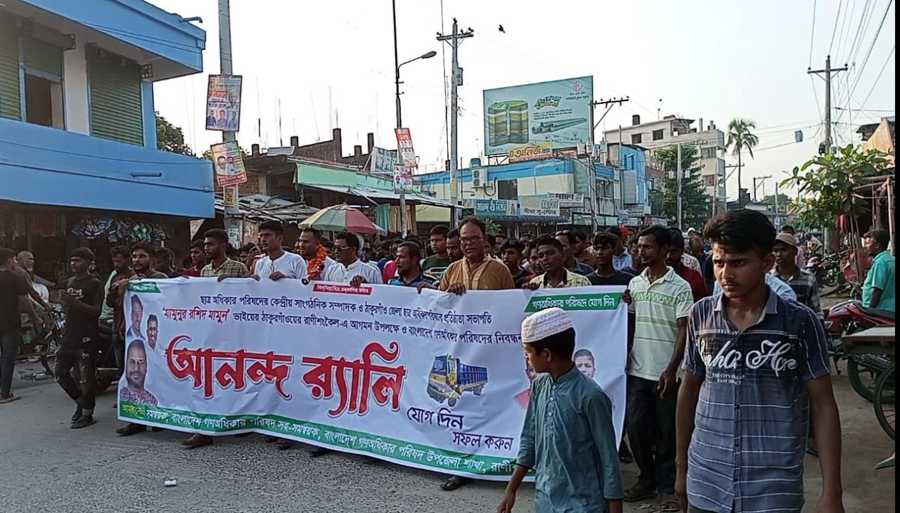 আব্দুল জব্বার : ঠাকুরগাঁয়ের রাণীশংকৈল উপজেলায় ২১শে সেপ্টেম্বর বিকেল ৩টার সময় আবাদ তাকিয়া মোহাম্মদিয়া কামিল মাদ্রাসার সামনে থেকে রাণীশংকৈল উপজেলার গণ অধিকার পরিষদের সমন্বয়ক সোহরাব, সহ সমন্বয়ক জাফর আলীর উদ্যোগে এক বর্ণাঢ্য আনন্দ শোভাযাত্রা অনুষ্ঠিত হয়। ঢাকা কেন্দ্রীয় কমিটির গণ অধিকার পরিষদের সাংগঠনিক সম্পাদক মামুনুর রশিদ মামুন এর আগমনে ব্যাপক উৎসাহ উদ্দীপনার মধ্য দিয়ে এ দলটির নেতাকর্মীরা ফুলের মালা দিয়ে গণঅধিকার পরিষদের ঠাকুরগাঁও জেলা সভাপতি ও কেন্দ্রীয় কমিটির সাংগঠনিক সম্পাদক মামুনুর রশিদকে আনুষ্ঠানিকভাবে বরণ করেন। অন্যদিকে এ সভা যাত্রাটি পৌর শহরের প্রধান প্রধান সড়ক প্রদক্ষিণ করে রাণীশংকৈল বন্দর চৌরাস্তায় গিয়ে এক আলোচনা সভা অনুষ্ঠিত হয়। উক্ত আলোচনা সভায় প্রধান অতিথি হিসেবে কেন্দ্রীয় কমিটির সাংগঠনিক সম্পাদক মামুনুর রশিদ মামুন বলেন অত্র উপজেলা সীমান্তবর্তী হওয়ায় মাদকের ছড়াছড়ি বেশি তাই আমাদের মূল লক্ষ হচ্ছে মাদক,দুর্নীতি চাঁদাবাজ মুক্ত একটি সুন্দর বাংলাদেশ গড়ার ,আর এই জন্য রাণীশংকৈলবাসীকে সর্বাত্মক সহযোগিতা করার জন্য অনুরোধ জানান। এ সময় উপজেলার প্রতিটি ইউনিয়নের সকল নেতাকর্মী ও সাংবাদিকবৃন্দ উপস্থিত ছিলেন।