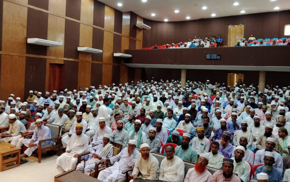 তৌহিদ,সহসম্পাদক : মাগুরা জেলা বাংলাদেশ উলামা মাশায়েখ পরিষদের আয়োজনে উলামা সম্মেলন-২০২৪ অনুষ্ঠিত। শনিবার ২১ সেপ্টেম্বর বিকাল ৩টায় মাগুরা শহরস্থ নোমানী ময়দানের অডিটোরিয়াম এই সম্মেলন অনুষ্ঠিত হয়। জেলা উলামা পরিষদের সেক্রেটারি মাওলানা মারুফ কারখী”র সঞ্চালনায় ও জেলা সভাপতি হাফেজ মাওলানা লিয়াকত আলী খানের সভাপতিত্বে অনুষ্ঠানে প্রধান অতিথি হিসেবে উপস্থিত ছিলেন মাগুরা জেলা জামায়াতে ইসলামীর সভাপতি এম,বি বাকের।প্রধান আলোচক হিসাবে উপস্থিত ছিলেন ইসলামী বিশ্ববিদ্যালয়ের দাওয়াহ এন্ড ইসলামিক স্টাডিজ বিভাগের চেয়ারম্যান প্রফেসর ড. অলী উল্লাহ।