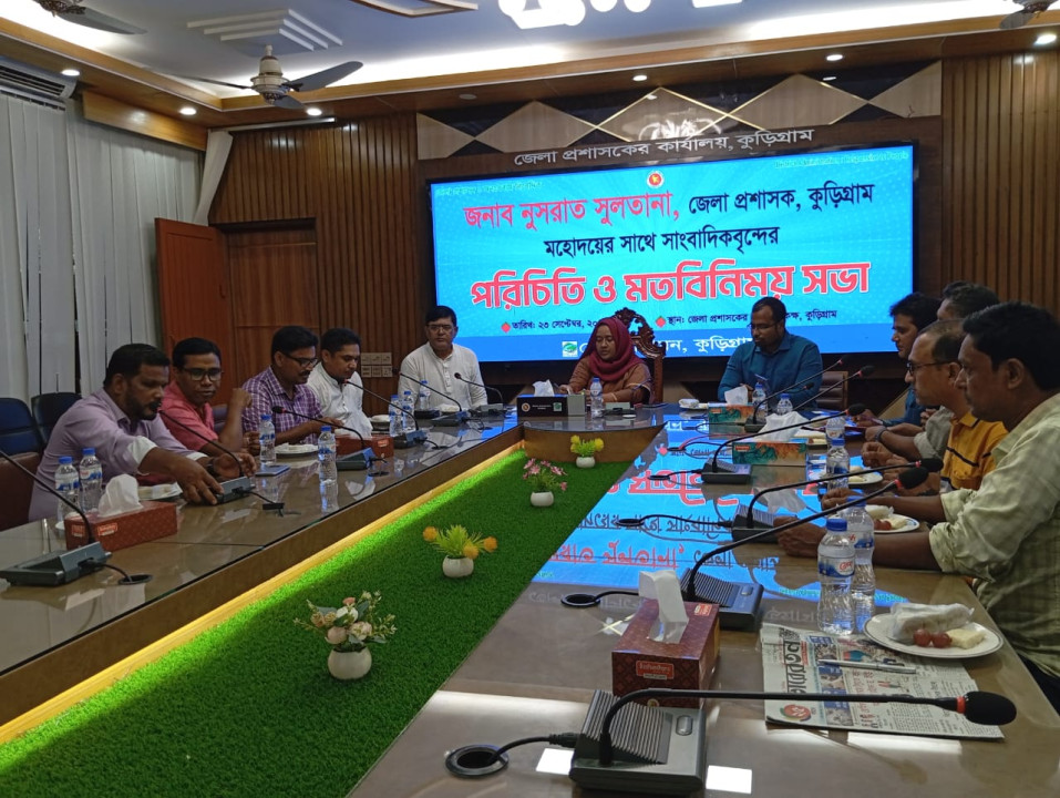 রুহুল আমিন রুকু : ২৩ সেপ্টেম্বর সোমবার বিকেলে কুড়িগ্রামের নবাগত জেলা প্রশাসক নুসরাত সুলতানা জেলা প্রেসক্লাবের সাংবাদিকদের পরিচিতি এবং মতবিনিময় সভা করেছেন। এসময় উপস্থিত ছিলেন অতিরিক্ত জেলা প্রশাসক ( রাজস্ব) উত্তম কুমার রায়। সভায় বক্তব্য রাখেন কুড়িগ্রাম জেলা প্রেসক্লাবের সভাপতি সহকারী অধ্যাপক অনিরুদ্ধ রেজা, সাধারণ সম্পাদক আমিনুর রহমান, সাংগঠনিক সম্পাদক নুরুল ইসলাম, আইটি বিষয়ক সম্পাদক আতিকুর রহমান রানা রুহুল আমিন রুকু কুড়িগ্রাম জেলা প্রতিনিধি, ফুলবাড়ী প্রেসক্লাবের সাধারন সম্পাদক জাকারিয়া মিয়া প্রমুখ। সভায় জেলা প্রশাসক নুসরাত সুলতানা বলেন- কুড়িগ্রামের দারিদ্রতা মোচনের জন্য এ অঞ্চলের বেকার জনগোষ্ঠিকে বিদেশে পাঠানোর উপর গুরুত্বারোপ করা হবে।