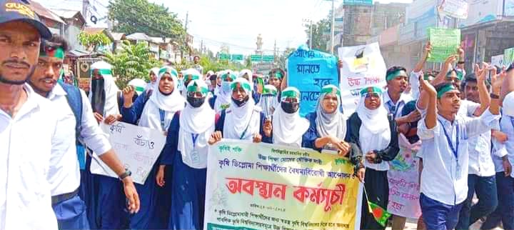 মো:জাহিদুল ইসলাম: কৃষি ডিপ্লোমা শিক্ষার্থীদের উচ্চ শিক্ষার জন্য স্বতন্ত্র কৃষি বিশ্ববিদ্যালয় প্রতিষ্ঠার এক দফা দাবিতে গাইবান্ধা এটিআই-এ মঙ্গলবার ঘন্টাব্যাপি অবস্থান কর্মসূচি ও বিক্ষোভ মিছিল অনুষ্ঠিত হয়। এটিআই’র কৃষি ডিপ্লোমা শিক্ষার্থীরা এই কর্মসূচির আয়োজন করে। অবস্থান কর্মসূচি শেষে একটি বিক্ষোভ মিছিল বের হয়ে শহরের প্রধান প্রধান সড়ক প্রদক্ষিণ করে জেলা প্রশাসক কার্যালয়ে গিয়ে শেষ হয়। পরে শিক্ষার্থীরা জেলা প্রশাসকের মাধ্যমে শিক্ষা উপদেষ্টা বরাবরে একটি স্মারকলিপি প্রদান করে। অবস্থান কর্মসূচি চলাকালে বক্তব্য দেন কৃষি ডিপ্লোমা শিক্ষার্থী মো: মুনতাসির রহমান, মো: আল ইমরান, মো: এম সাকিবুল ইসলাম সাকিব, মো: মেহেদী হাসান, সাকিব হাসান শিহাব, মো. ফাহিম, জান্নাতুল নাইম মিতু, মারুফা আকতার, মাইশা আকতার ফাতেমা প্রমুখ। বক্তারা, কৃষি ডিপ্লোমা শিক্ষার্থীদের উচ্চ শিক্ষার জন্য স্বতন্ত্র কৃষি বিশ্ববিদ্যালয় প্রতিষ্ঠা অন্যথায় পাবলিক কৃষি বিশ্ব বিদ্যালয় সমুহে উচ্চ শিক্ষার জন্য নির্দিষ্ট আসনের দাবি জানান।