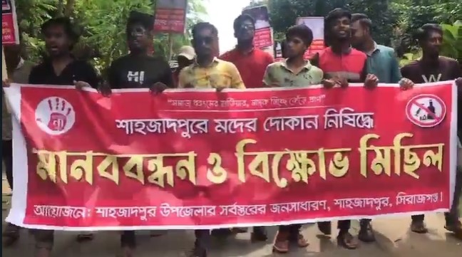 মোঃ আশিকুল ইসলাম : সিরাজগঞ্জের শাহজাদপুরে পুনরায় মদের দোকান খোলার প্রতিবাদে ও স্থায়ীভাবে বন্ধের দাবিতে বিক্ষোভ মিছিল অনুষ্ঠিত হয়েছে। বিক্ষোভ মিছিল শেষে উপজেলা নির্বাহী অফিসার ও থানার অফিসার ইনচার্জের কাছে স্মারকলিপি প্রদান করা হয় মঙ্গলবার দুপুর সাড়ে ১২টায় শাহজাদপুর উপজেলার সর্বস্তরের জনগণের ব্যানারে আয়োজিত শতাধিক মানুষের উপস্থিতিতে বিক্ষোভ মিছিলটি শাহজাদপুর সরকারি পাইলট উচ্চ বিদ্যালয়ের সামনের সড়ক থেকে শুরু হয়ে শহরের বিভিন্ন সড়ক প্রদক্ষিণ শেষে উপজেলা চত্বরে এসে শেষ হয়। এসময় বিক্ষোভ মিছিল থেকে মদের দোকান ও মদ বিক্রেতা মানিক সরকারের বিরুদ্ধে বিভিন্ন ধরনের শ্লোগান দেয়া হয়। বিক্ষোভ মিছিল শেষে উপজেলা নির্বাহী অফিসার মোঃ কামরুজ্জামানের কাছে স্মারকলিপি প্রদান করা হয়, পরে থানার অফিসার ইনচার্জ মোঃ সবুজ রানার কাছেও স্মারকলিপি প্রদান করা হয় উল্লেখ্য, গত ১২ই জুলাই শাহজাদপুরে মানিক সরকারের মদের দোকান বন্ধের দাবিতে বিক্ষোভ মিছিল করে জনসাধারণ। এসময় জনসাধারণ মদের দোকানে ভাঙচুর চালায়। পরদিন বাগদি সম্প্রদায়ের কয়েকজন মদের দোকান খোলার দাবিতে থানার সামনে বিক্ষোভ করে। ঘটনাটি ছড়িয়ে পরলে দেশজুড়ে ব্যাপক সমালোচনার প্রেক্ষিতে জেলা প্রশাসকের নির্দেশনায় মাদকদ্রব্য নিয়ন্ত্রণ অধিদপ্তর ১৪ই জুলাই সন্ধ্যায় মানিক সরকারের মদের দোকান সিলগালা করে দেয়। মদের দোকান বন্ধের খবর ছড়িয়ে পড়লে শাহজাদপুরের বিভিন্ন স্থানে মিষ্টি বিতরণ করে জনসাধারণ। সম্প্রতি মানিক সরকারের মদের দোকান পুনরায় খোলার খবরে শাহজাদপুর উপজেলা জুড়ে অসন্তোষ শুরু হয়েছে। এই বিষয়ে শাহজাদপুর উপজেলা নির্বাহী অফিসার মোঃ কামরুজ্জামান বলেন, আমি জেলা শহরের থাকায় স্মারকলিপি অফিস থেকে গ্রহণ করা হয়েছে। মদের দোকান খোলার বিষয়ে কেউ আমার কাছ থেকে অনুমতি নেয়নি। আমি জানতে পেরেছি মাদকদ্রব্য নিয়ন্ত্রণ অধিদপ্তর থেকে লোকজন এসে তার মদের দোকান খুলে দিয়েছে। এই বিষয়ে উর্ধ্বতন কর্তৃপক্ষের সাথে আলোচনা করে প্রয়োজনীয় ব্যবস্থা গ্রহণ করা হবে। এই ঘটনায় থানার অফিসার ইনচার্জ মোঃ সবুজ রানা স্মারকলিপি গ্রহনের বিষয়টি নিশ্চিত করে বলেন, মদের দোকান বন্ধ করে দেয়ার পর সম্প্রতি জানতে পেরেছি সেটা আবারো খোলা হয়েছে। উর্ধ্বতন কর্তৃপক্ষের কাছে স্মারকলিপির অনুলিপি পাঠানো হয়েছে। সাথে আলোচনা করে নির্দেশনা মোতাবেক ব্যবস্থা গ্রহণ করা হবে।