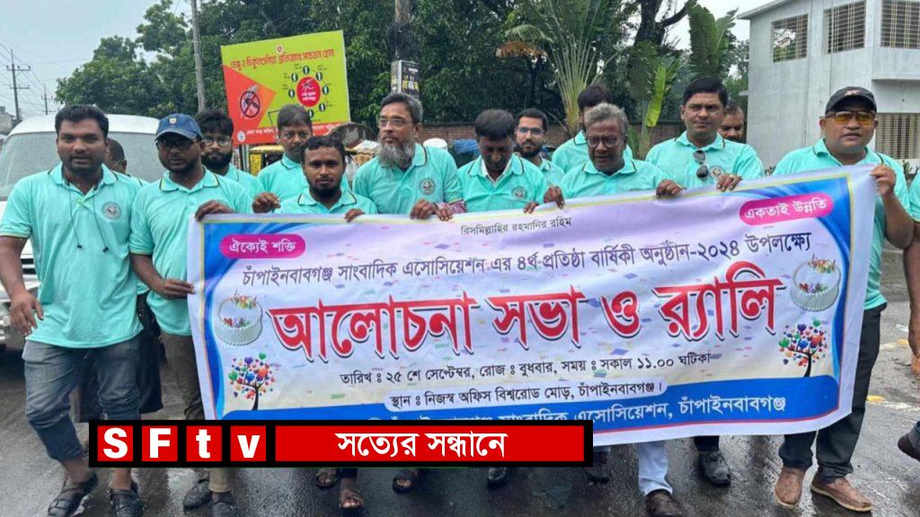 ঐক্যেই শক্তি একতাই উন্নতি এই প্রতিপাদ্য নিয়ে,চাঁপাইনবাবগঞ্জ সাংবাদিক এসোসিয়েশনের ৪র্থ প্রতিষ্ঠা বার্ষিকী উপলক্ষে র‍্যালি আলোচনা সভা ও কেট কাটা অনুষ্ঠান অনুষ্ঠিত হয়েছে ।