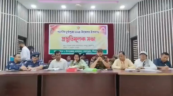 আশিকুল ইসলাম : সারাদেশের ন্যায় সিরাজগঞ্জের বেলকুচি উপজেলায় শান্তিপূর্ণ ভাবে শারদীয় দূর্গাপূজা উদযাপন উপলক্ষে প্রস্তুতিমূলক এক আলোচনা সভার আয়োজন করা হয়। আলোচনা সভায় ধর্মবর্ণ দলমত নির্বিশেষে এলাকায় শান্তিরক্ষার্থে হিন্দু সম্প্রদায়ের সবচেয়ে বৃহত্তম ধর্ম উৎসব শারদীয় দূর্গাপূজা উদযাপন উপলক্ষে বিভিন্ন দিকনির্দেশনা মুলক বক্তব্য তুলে ধরে পূজা মন্ডপে কোন দুষ্কৃতিকারী কোন প্রকার বিশৃঙ্খলা সৃষ্টি করতে না পারে এজন্য প্রত্যেক পূজা মন্ডপে সিসি ক্যামেরা লাগিয়ে কড়া নজরদারির মাধ্যমে নিরাপত্তার ব্যবস্থার পরামর্শ দেন বক্তারা। মঙ্গলবার সকালে ১লা অক্টোবর বেলকুচি উপজেলা অডিটোরিয়ামে বেলকুচি উপজেলা নির্বাহী অফিসার আফিয়া সুলতানা কেয়ার সভাপতিত্বে প্রকল্প বাস্তবায়ন কর্মকর্তা হেলাল উদ্দিন এর সঞ্চালনায় বক্তব্য রাখেন বেলকুচি উপজেলা দায়িত্বপ্রাপ্ত ক্যাম কমান্ডার মেজর তবিবুর রহমান, বেলকুচি থানা সার্কেল অফিসার রাফিউর রহমান, বেলকুচি সহকারী কমিশনার ভূমি প্রতীক মন্ডল, বেলকুচি থানা অফিসার ইনচার্জ জাকেরিয়া হোসেন, তদন্ত ওসি আব্দুল বারিক, পূজা উদযাপন কমিটির বেলকুচি শাখার সভাপতি বৈদ্যনাথ রায়, বেলকুচি শাখার সাধারণ সম্পাদক অমৃত নারায়ন দে, বাংলাদেশ হিন্দু বৈদ্য খৃষ্টান ঐক্য পরিষদের সভাপতি জয়শঙ্কর শাহ, বেলকুচি উপজেলা বিএনপির আহবায়ক নূরুল ইসলাম গোলাম, উপজেলা বিএনপির সদস্য সচিব বনি আমিন, পৌর বিএনপির আহবায়ক হাজী আলতাফ হোসেন, বেলকুচি উপজেলা জামায়াত আমির আরিফুল ইসলাম সোহেল, বেলকুচি উপজেলা ছাত্র সমন্বয়কের আহবায়ক মুসা হাশেমী সহ উপজেলার বিভিন্ন পর্যায়ের নেতৃবৃন্দ উপস্থিত ছিলেন।