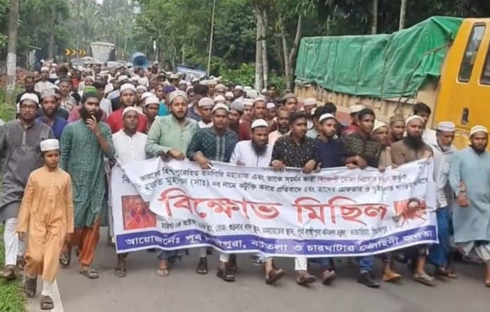 বক্তব্যে:- ভারতের হিন্দুত্ববাদী নেতা ধর্মগুরু রামগিরি মহারাজ এবং তাকে সমর্থনকারী বিজেপি নেতা নিতেশ রাম কতৃর্ক ইসলাম ধর্ম ও রাসূল (সাঃ) কে নিয়ে কটুক্তির প্রতিবাদে এবং তাদের গ্রেফতার ও দৃষ্টান্তমূলক শাস্তির দাবিতে বিক্ষোভ মিছিল ও প্রতিবাদ সমাবেশ টি অনুষ্ঠিত হয়।